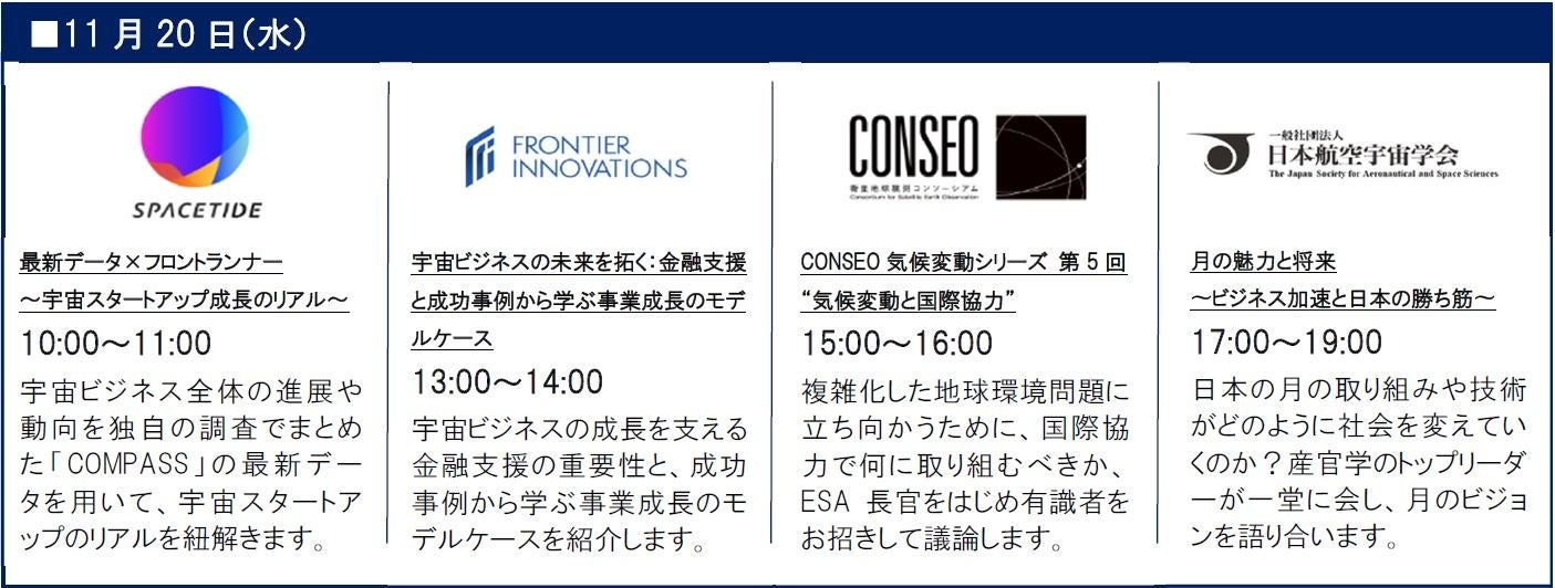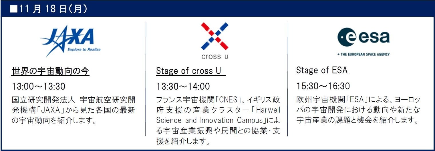 今年は欧州宇宙機関(ESA)をはじめとした海外の公的機関や企業・団体が多数参画。国内外100以上の企業・団体が参加、150名以上が登壇