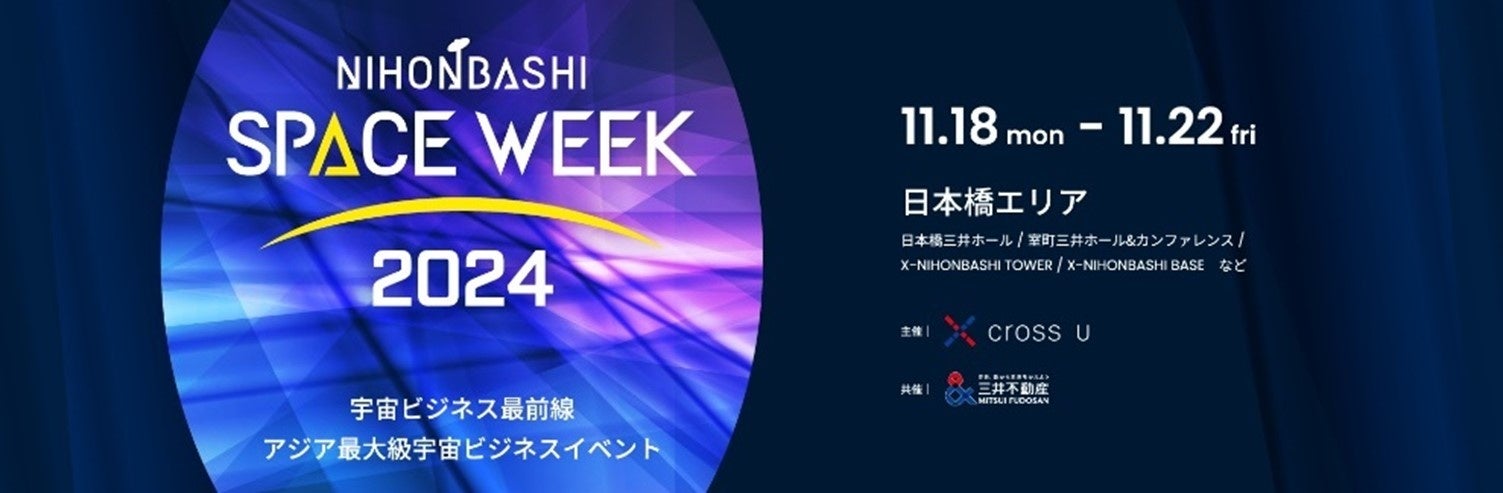 一般社団法人クロスユー(東京都中央区、理事長 中須賀真一 東京大学大学院工学系研究科 教授 /以下「クロスユ-」)と三井不動産株式会社(本社:東京都中央区、代表取締役社長:植田俊/以下「三井不動産」)は、2024年11月18日(月)から11月22日(金)まで、国内外の宇宙プレイヤーが一堂に集結するアジア最大級の宇宙ビジネスイベント「NIHONBASHI SPACE WEEK 2024(以下、「本イベント」)」を開催いたします。