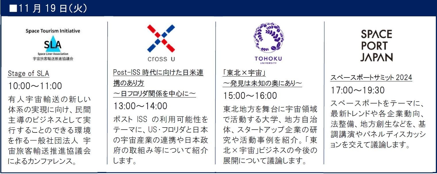 民間月面探査プログラムの打ち上げを最速で今年12月に予定しているispaceや、持続可能な宇宙環境を目指し、世界で初めてデブリの周囲飛行に成功したアストロスケールなど、世界からも注目を集めるスタートアップが多数出展します。