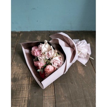 自然豊かな山口県柳井市で、長年にわたりバラ栽培を行っている「ホシファーム」で、バラのプロが惜しみない愛情を注いで育てたバラをブーケにしました。その時期一番のおすすめのバラを摘み取り、キュートなブーケに仕立て、まるでドレスをまとったようなかわいいラッピングでお届けいたします。