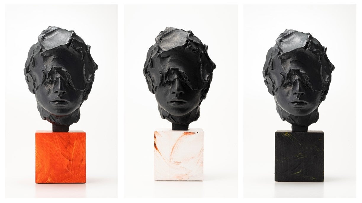 彫刻家を夢見て美術の道に進んだ佐藤は、常に粘土でイメージをつくり上げる感覚で絵画を描いています。ペインターとしての自分が描く形を、彫刻家としての自分が「実在するもの」として創作したのが、今回の出展作品《Woman's Head 1》です。絵画的人物イメージを立体作品に昇華させた自身初の試みです。