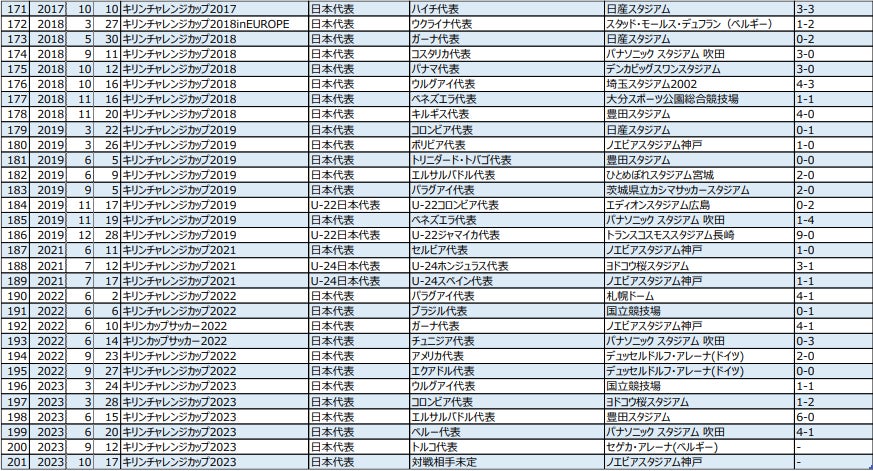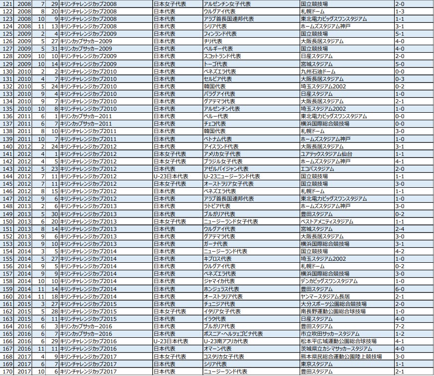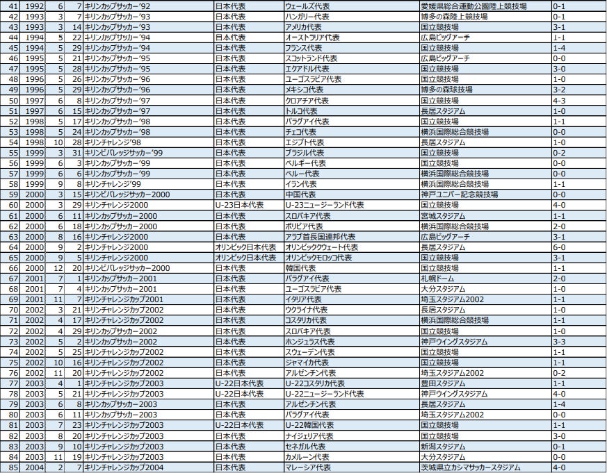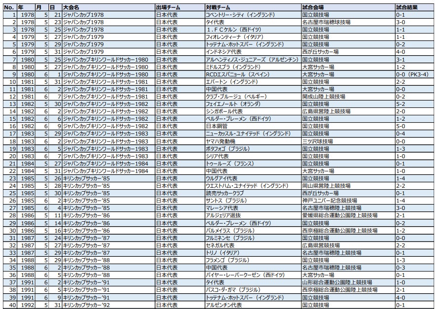 ■ジャパンカップ並びにキリン特別協賛試合一覧