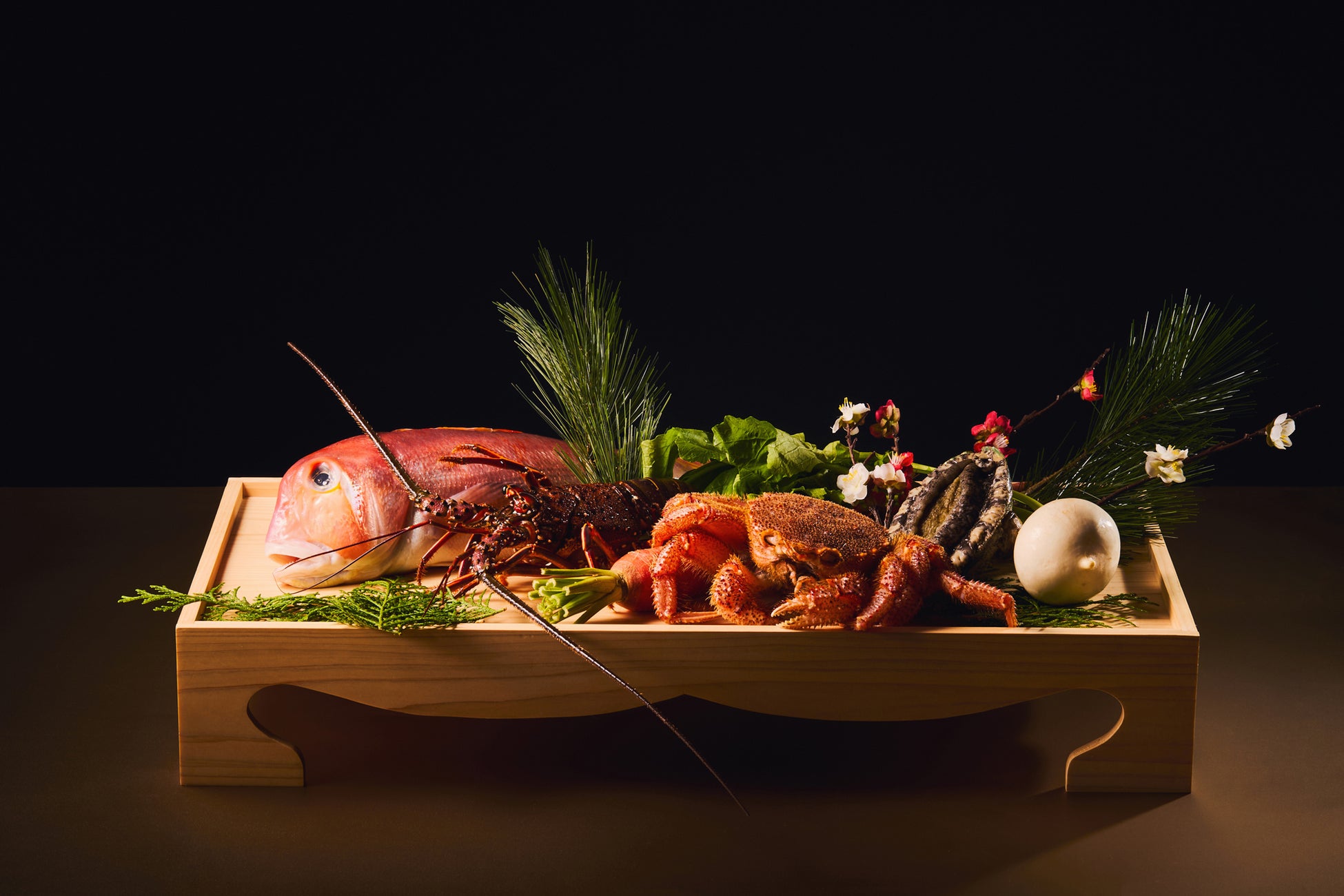 唯一無二の「食」の魅力を柱とし、ここでしか味わえない料理の数々を提供する「大阪ステーションホテル」。料理人出身で系列ホテルの総料理長を歴任した佐藤伸二総支配人の元、「停滞する王道ではなく、進化する王道」を目指し、新進気鋭の総料理長・松森康記率いるシェフが集結。開業後初の年末年始に、縁起が良いとされる食材を使用し、目にも鮮やかな、お祝いシーンにふさわしいメニューが揃いました。