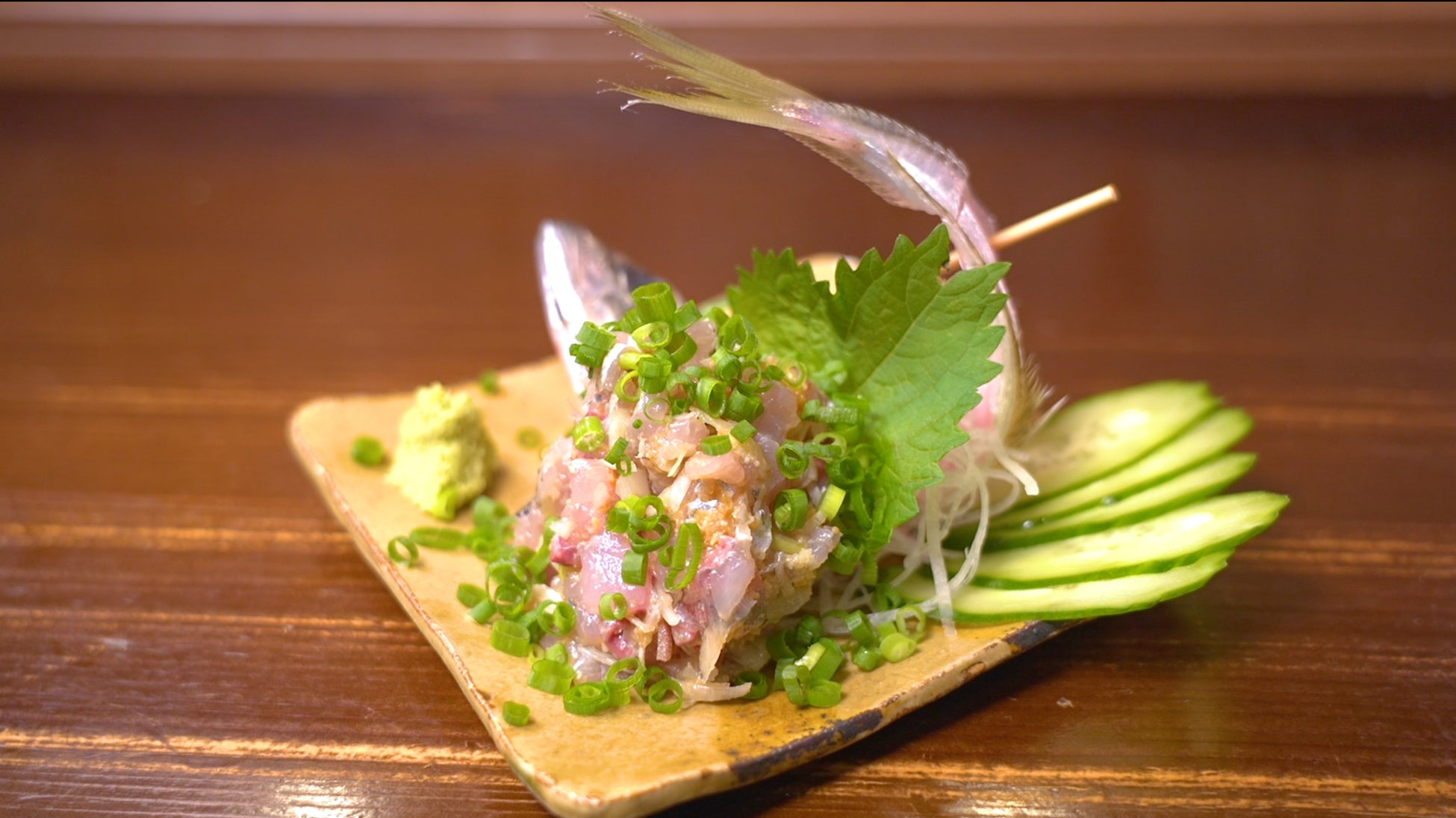 続いて島とうがらしが1本入っただし巻きと、真鯵のなめろうを注文。だし巻きは辛いかと思いきや辛さはなく、島とうがらしの風味がよく効いた逸品だ。なめろうは絶妙なたたき具合で、程よい弾力も楽しめる工夫が。