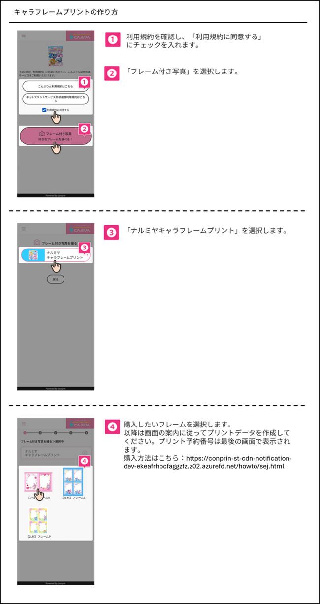 こんぷりんページ( https://selfy.conprin.com/sej-narumiyaCP2026/ )より以下の手順でご購入ください。