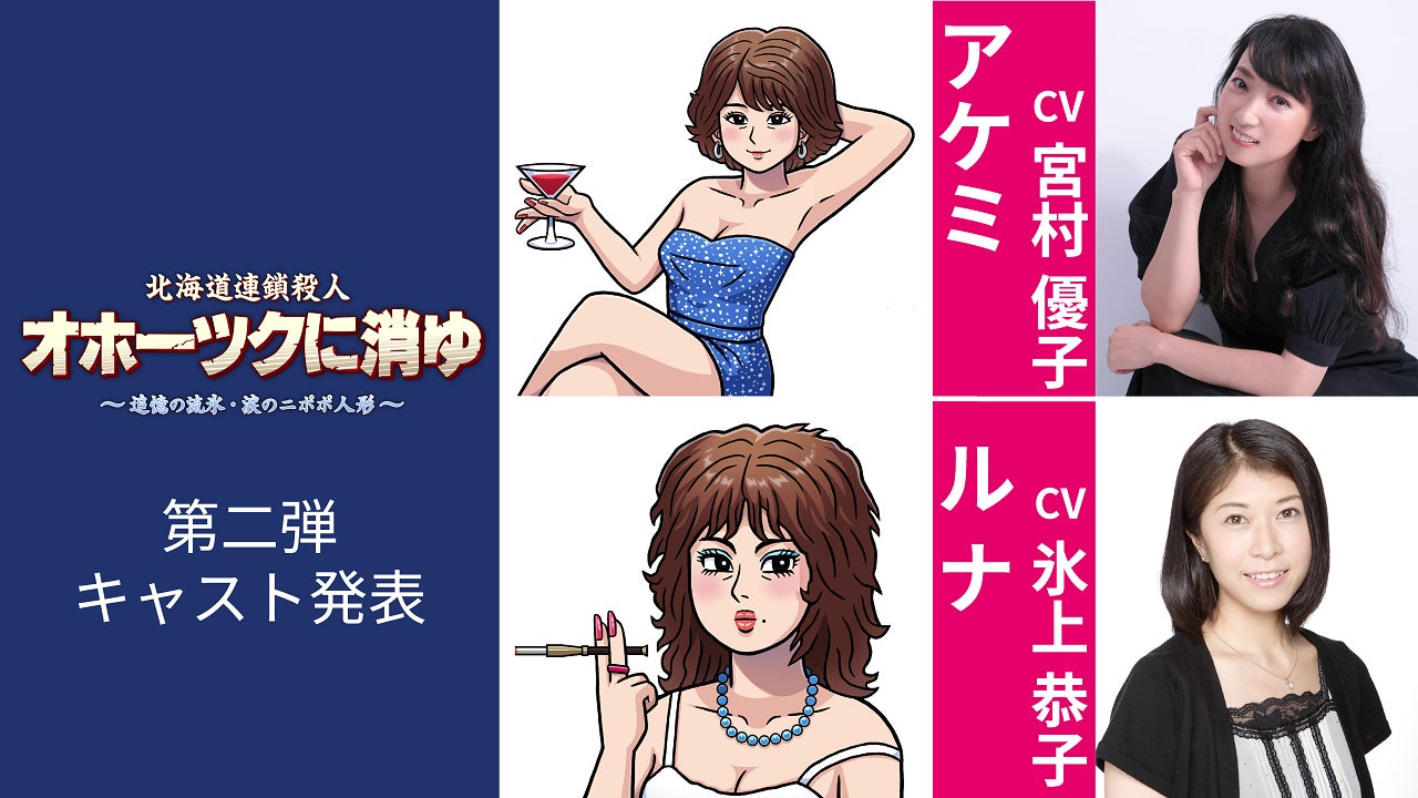 「北海道連鎖殺人 オホーツクに消ゆ ~追憶の流氷・涙のニポポ人形~」堀井雄二さんのスペシャルメッセージ動画を公開!!さらに第二弾キャスト発表、アケミ役は宮村優子、ルナ役は氷上恭子が担当