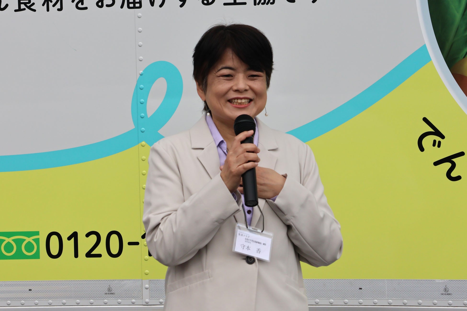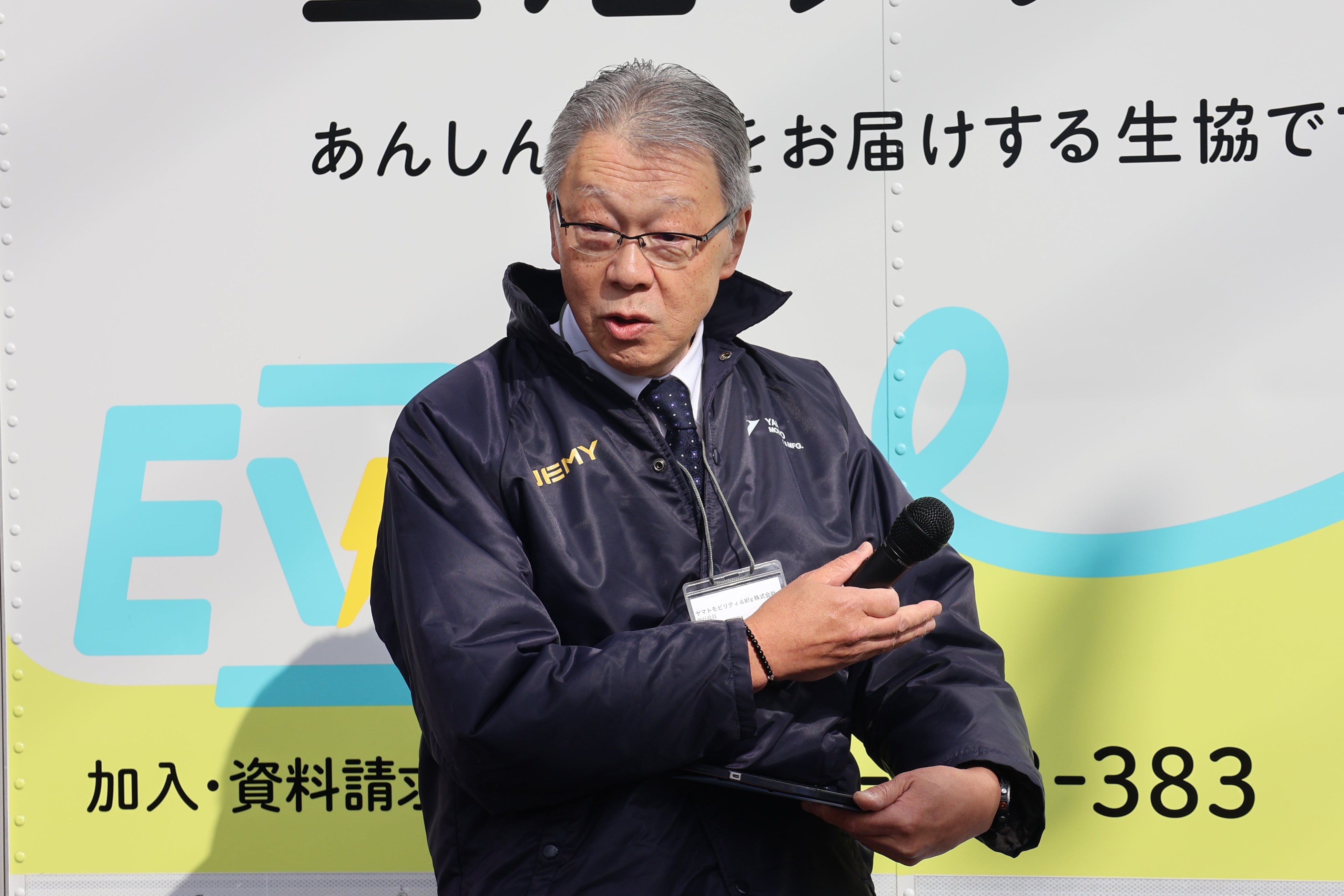 関係するみなさまのおかげで、ようやくEVトラックを導入することができました。これから多くの組合員が街中でこのEVトラックが走る姿を見て嬉しい気持ちになると思います。生活クラブでは食材だけでなく環境、ケアを自分たちで暮らしやすい社会をめざして活動しています。そんな活動の中で、この1台目のEVトラック導入が心づよい大きな一歩になると考えます。