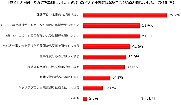 ・身体だけでなく心にも影響するので仕事へのモチベーションが下がる(50代:派遣社員)