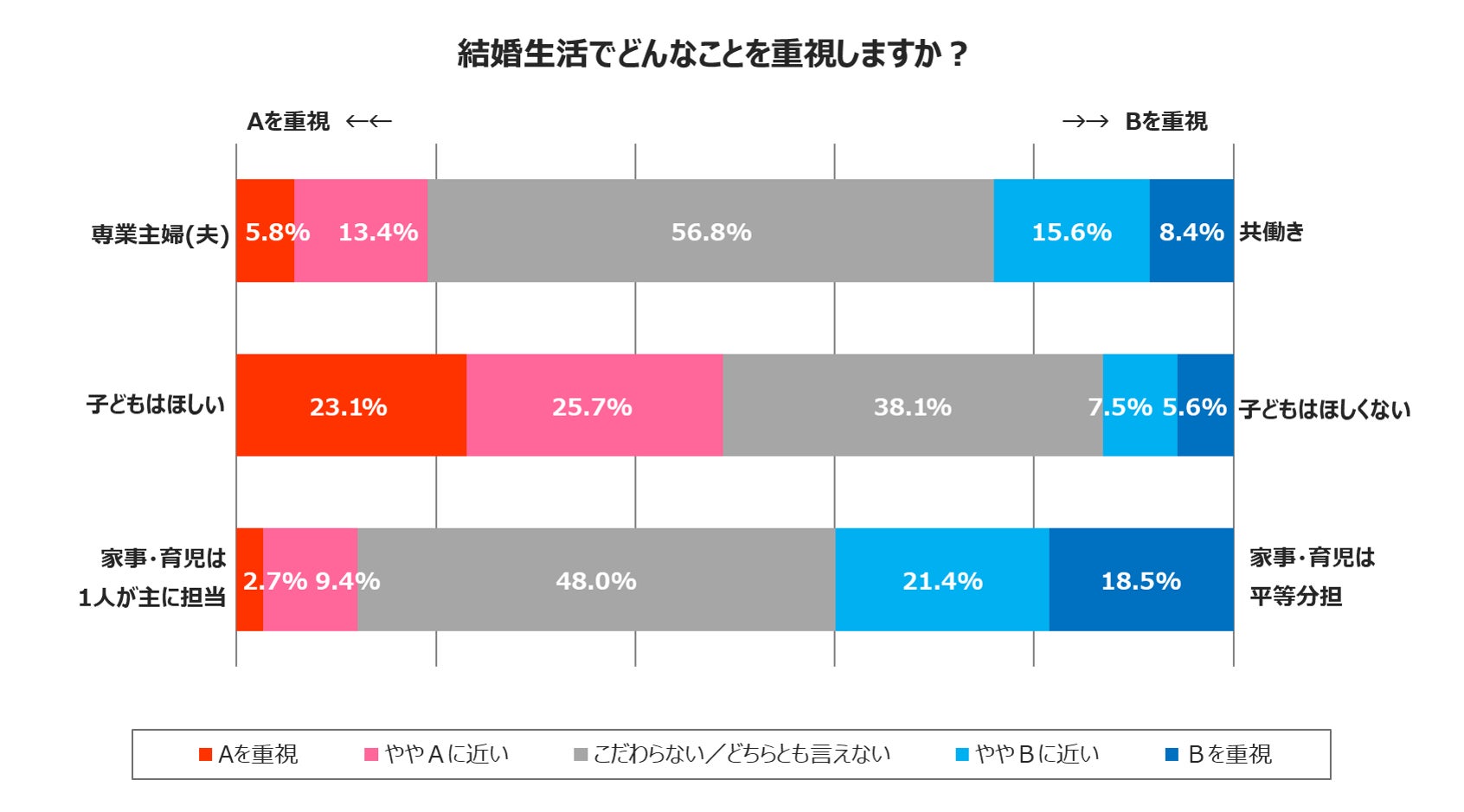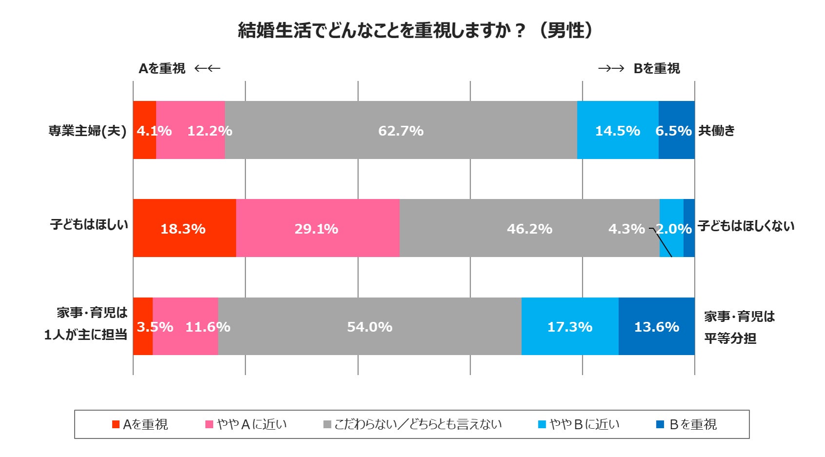 一方で、収入や家事・育児以外においては多くのこだわりを持たない方がいることもわかっています。