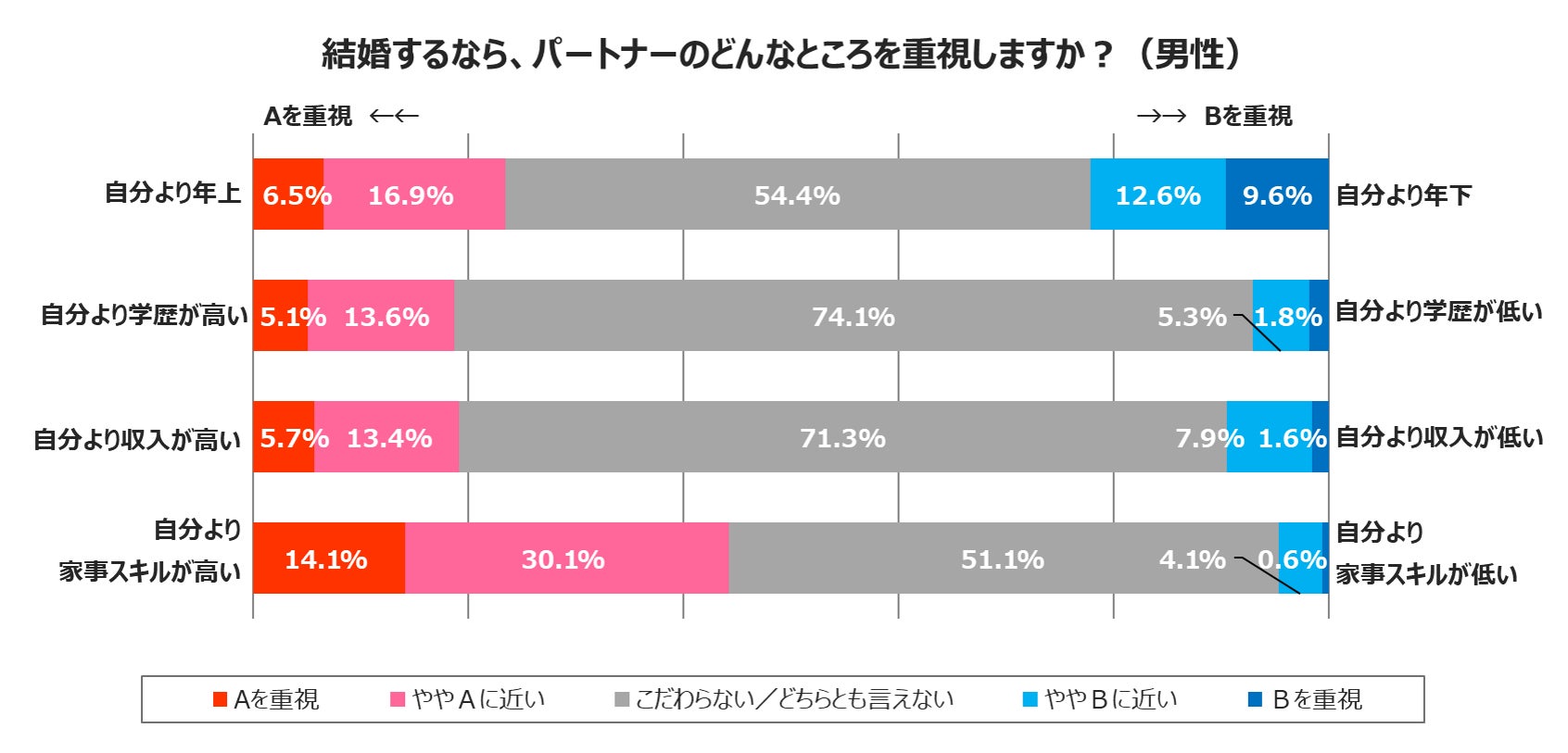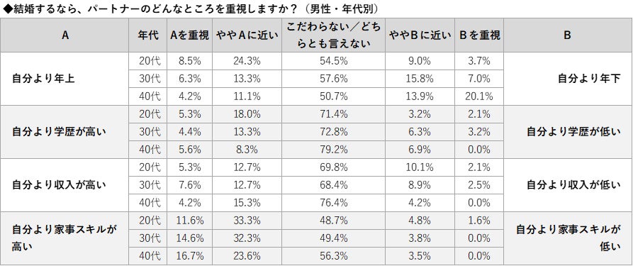 年齢、学歴、家事スキルに関してはこだわらない/どちらとも言えないと回答した人が多くを占めました。