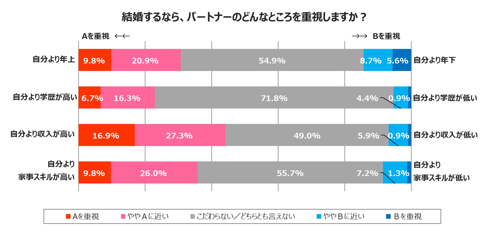 また収入においては、「自分より高い」を重視する人が44.2%となりました。