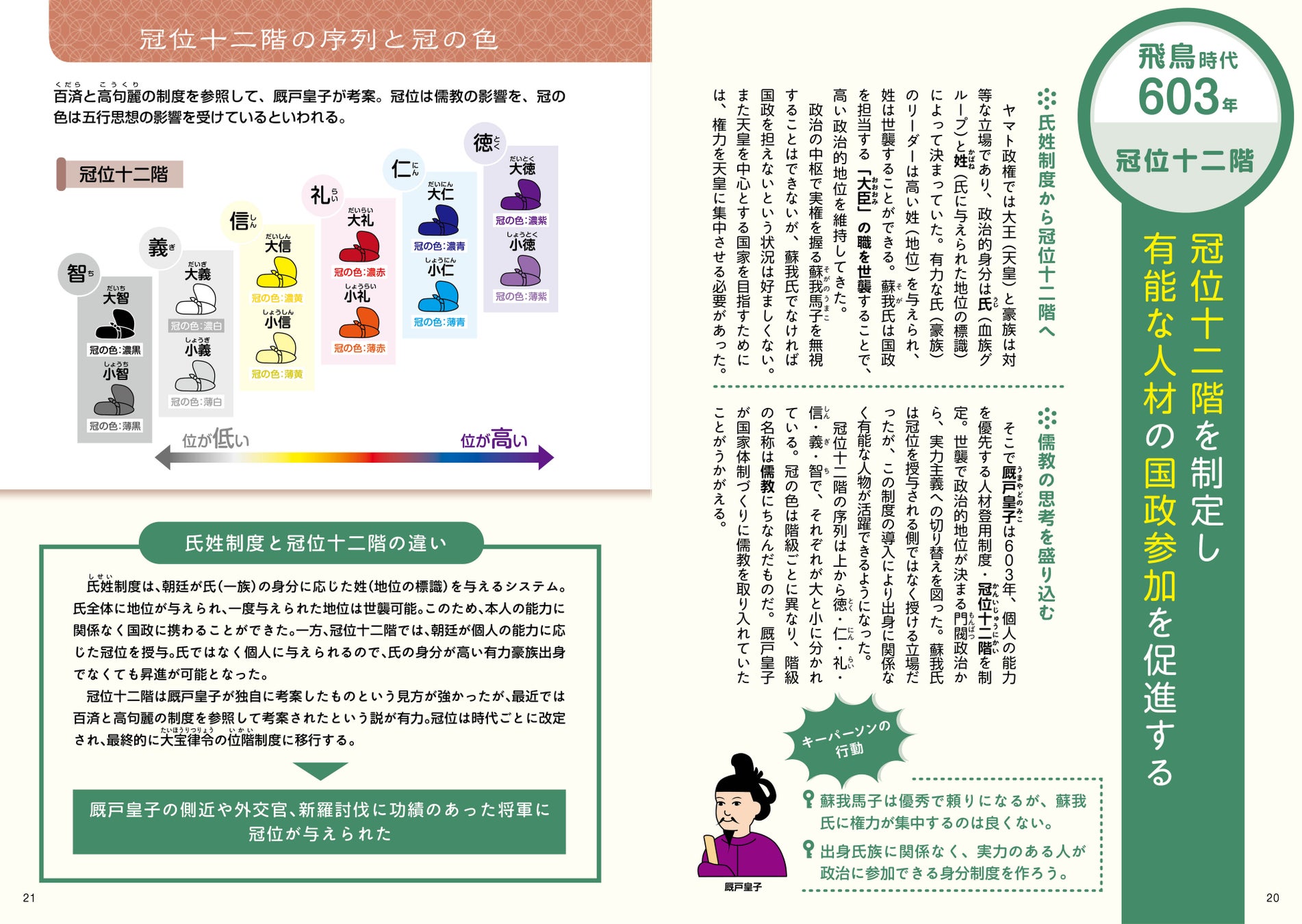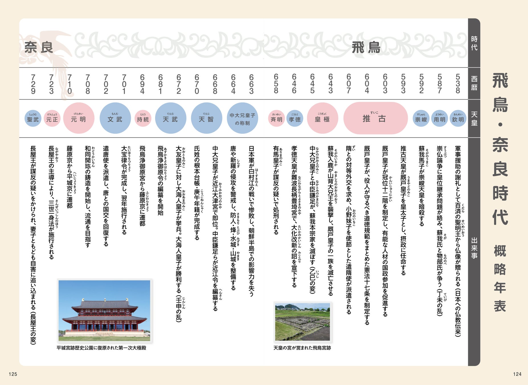 当社人気の「スッと頭に入る」歴史シリーズの飛鳥・奈良時代編が登場です。仏教が大陸から伝来し、律令制や現在に至るまで続く天皇制が確立した飛鳥時代、そして平城京に遷都し、藤原氏の台頭や東大寺の建立、『古事記』『日本書紀』『万葉集』の完成がみられる奈良時代、それぞれ奈良を舞台に歴史ロマンにあふれ、世界文化遺産の国内推薦が決定したこともあって今また歴史ファンを中心に大きな注目を集めています。