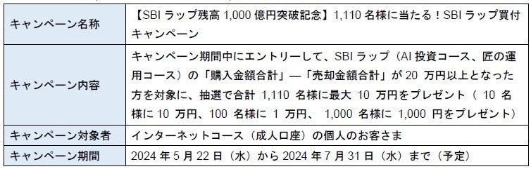 ■SBIラップ残高1,000億円突破を記念した「1,110名様に当たる!SBIラップ買付キャンペーン」を実施