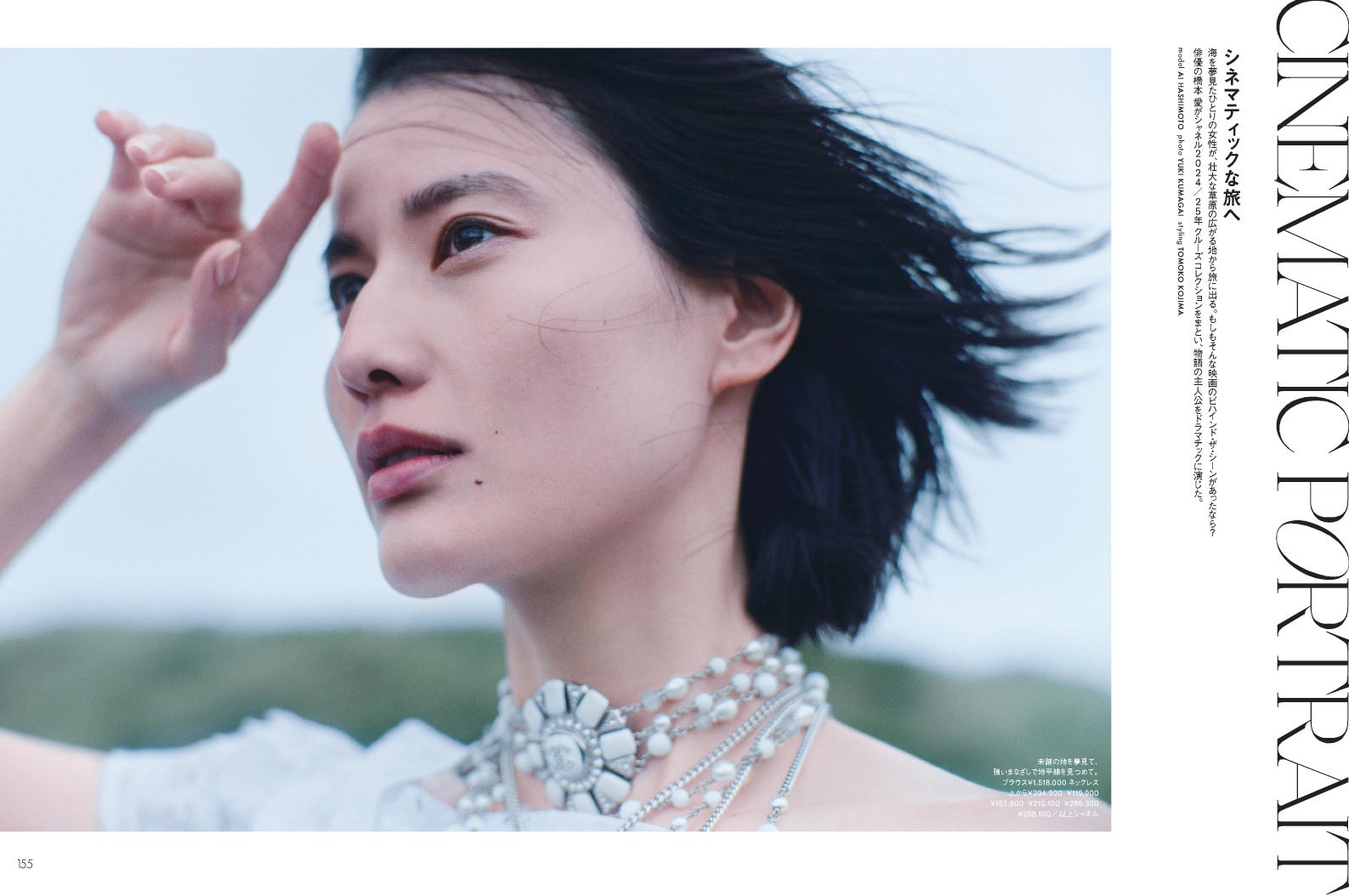 「海を夢見たひとりの女性が、壮大な草原の広がる地から旅に出る。もしそんな映画のビハインド・ザ・シーンがあったなら?」というコンセプトのもと、物語の主人公をドラマチックに演じています。広大な草原に佇む橋本さんの凛とした魅力と細部まで美しい「シャネル」のコレクションが織りなすファンタジックな世界観をお楽しみください。