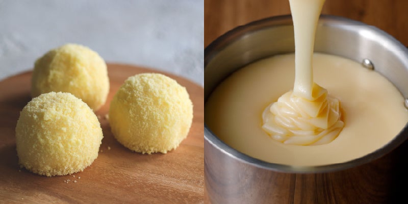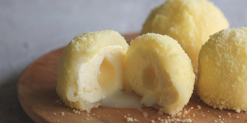 もっちり食感の餅生地が包み込むのは、濃厚なジャージーミルクソースとほのかな酸味のレアチーズムース。