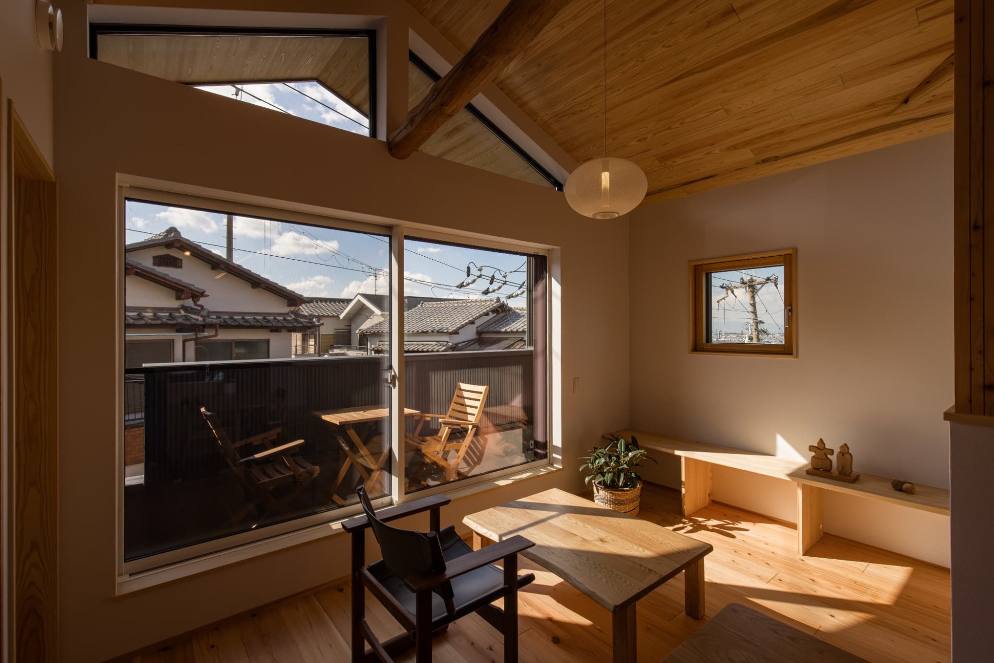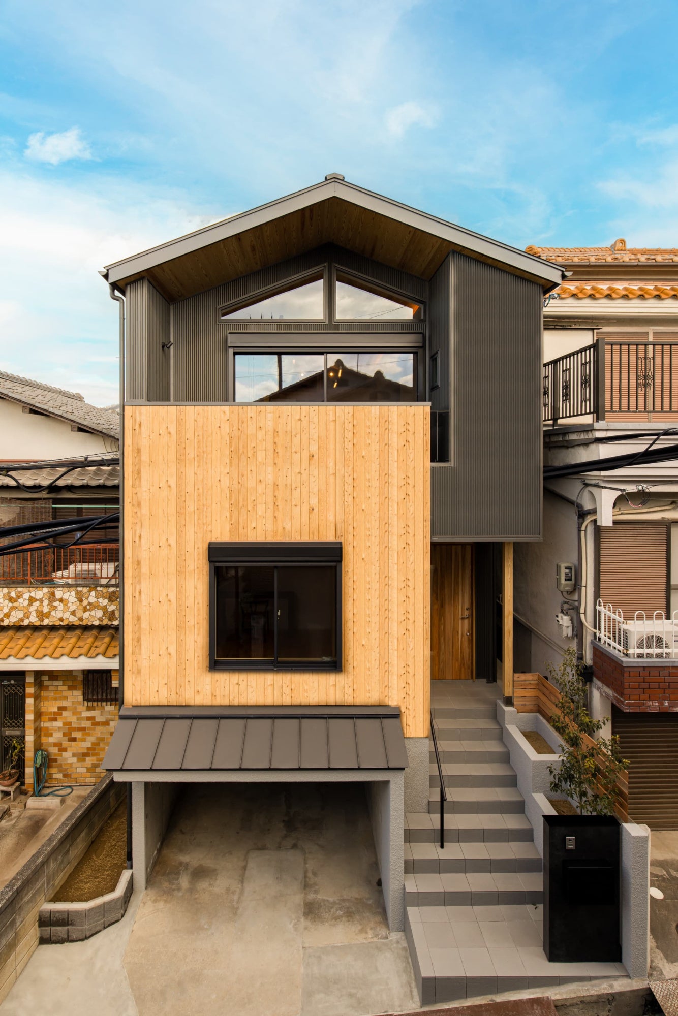 狭小かつ高低差がある敷地は、シニアライフを迎える施主にとって厳しい環境となっていたが、その敷地条件を巧みに利用し、オリジナリティの高い住まいを実現。階段のあるアプローチから玄関、個室、2階リビングまで、住み手のために細やかに配慮されており、断熱性・耐震性も向上させた。関西特有の文化住宅が、高い設計力によって驚くほど一新されており、長く、安心して暮らせる住まいに生まれ変わっている。