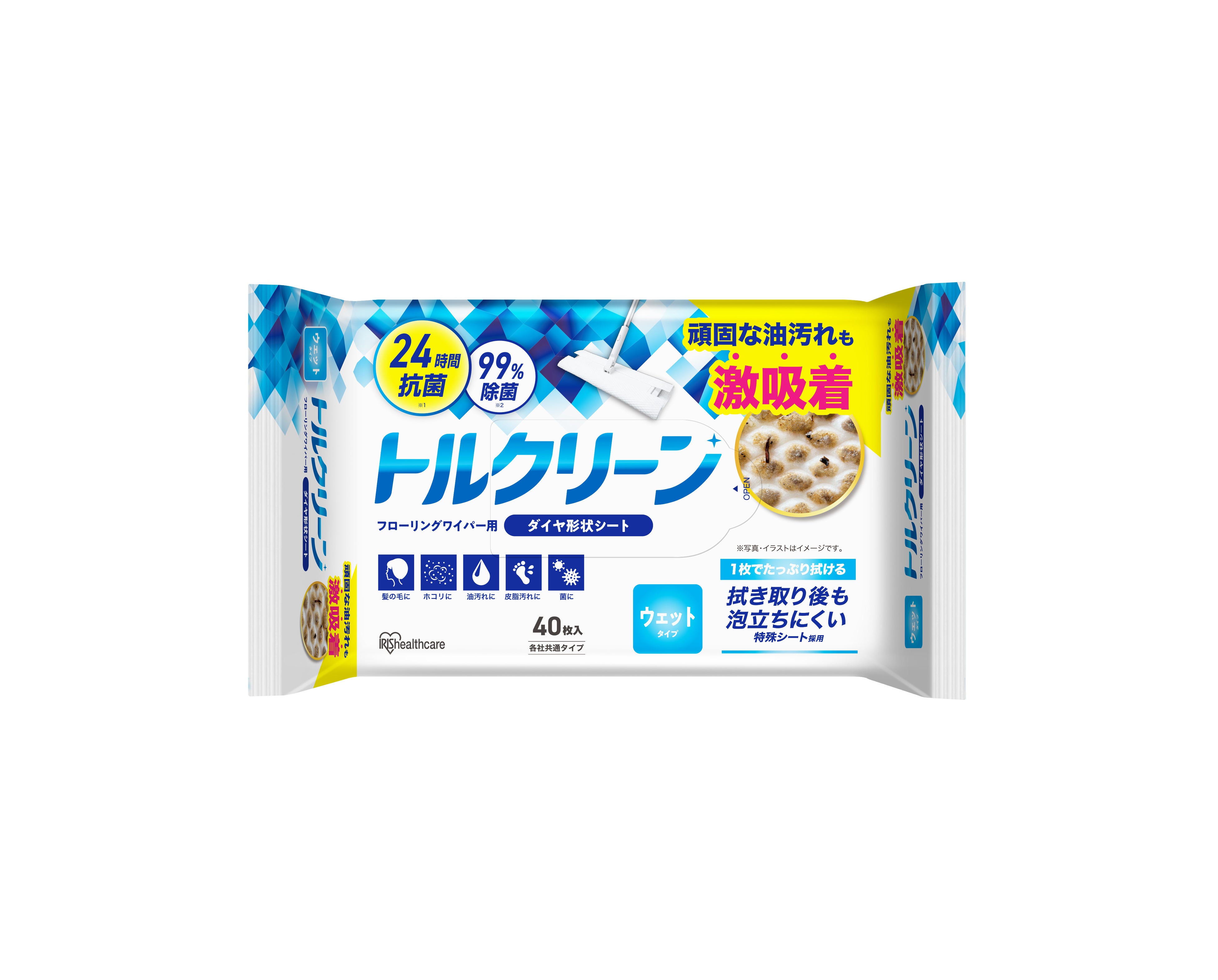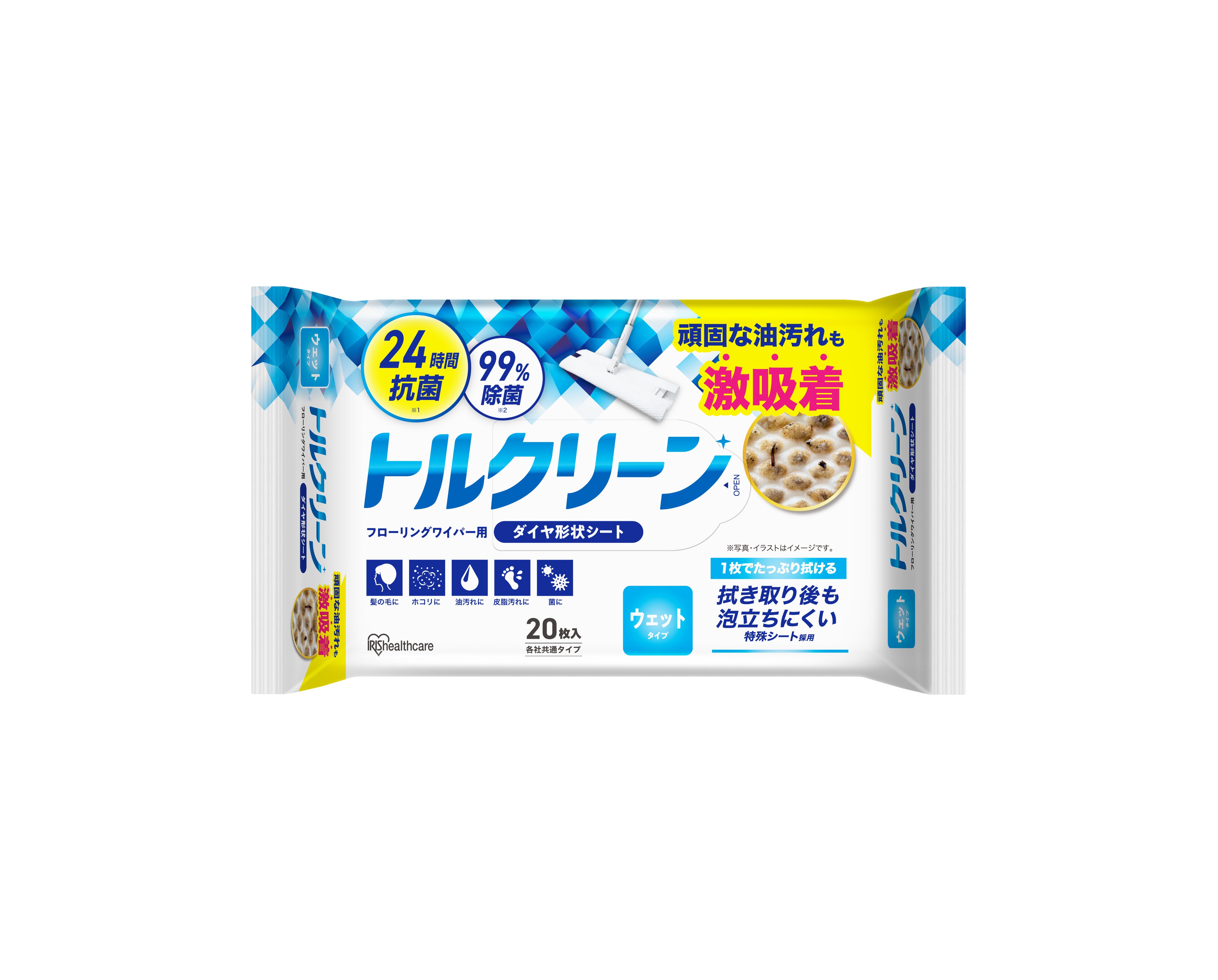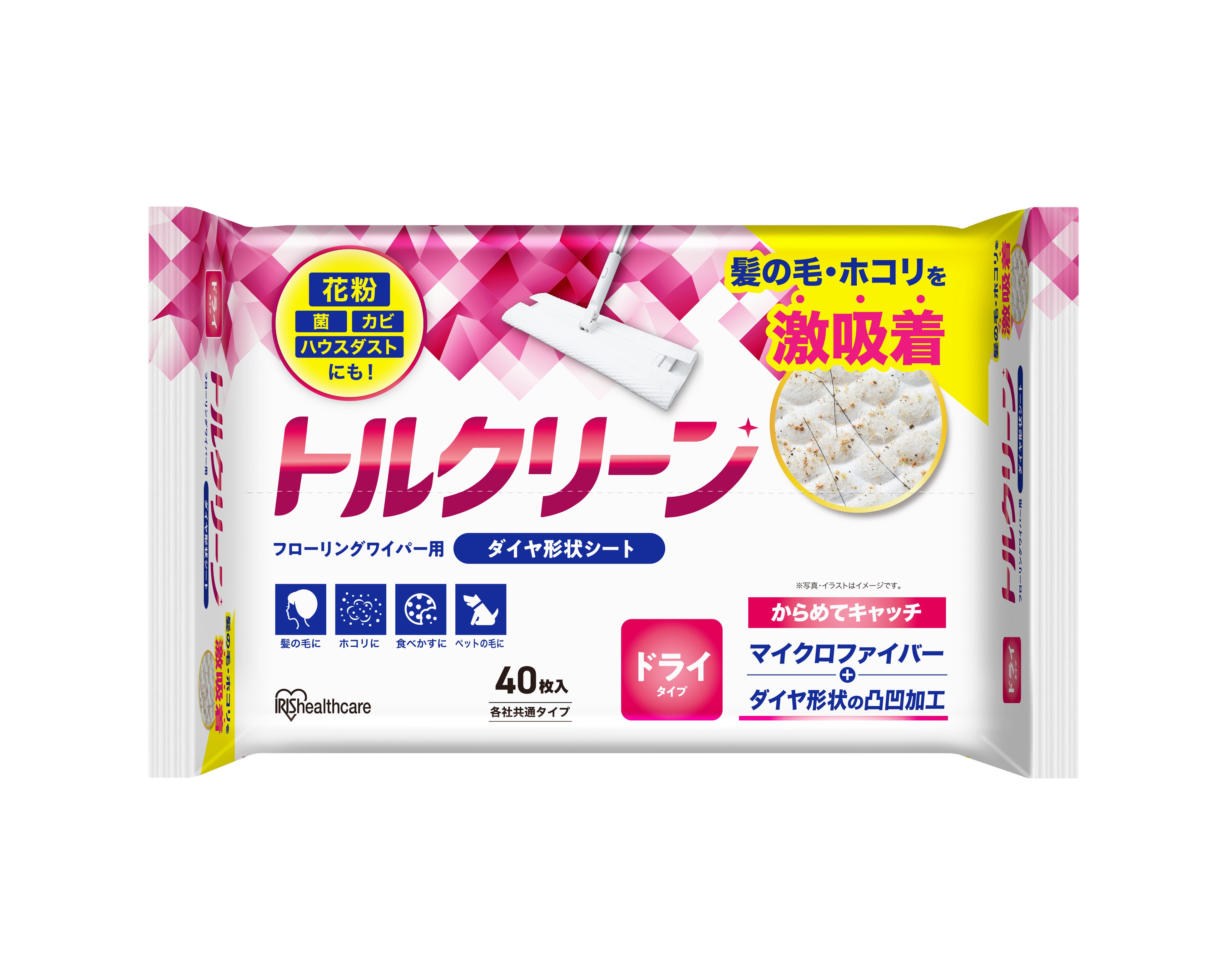 「トルクリーン フローリングシート ドライタイプ/ウェットタイプ」は、マイクロファイバーを用いた特殊製法のシートにダイヤ形状の凸凹エンボス加工を施すことで、ゴミを吸着しやすく、しっかりと汚れを落とせます。