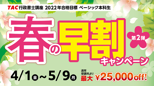 【行政書士】「春の早割キャンペーン」5/9(月)まで実施。春から始める方に最適のコースが今なら最大25,000円割引!