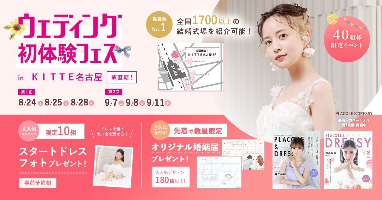 【8/24(土)8/25(日)8/28(水)限定】 <名古屋駅直結>豪華特典付き!ウェディング初体験フェス開催決定 in DRESSYCAFE