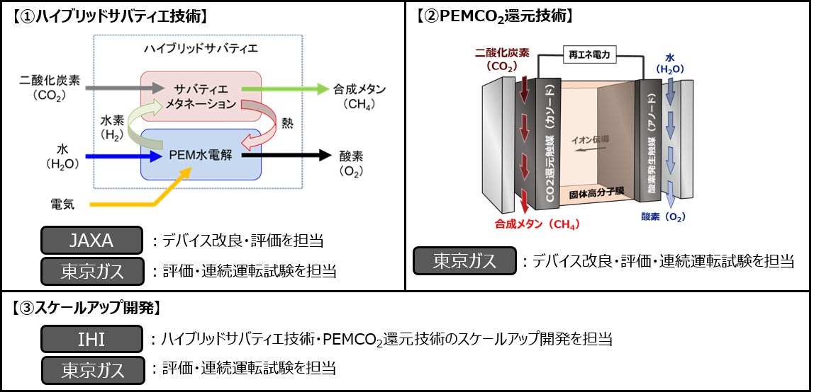 東京ガス株式会社(社長:内田 高史、以下「東京ガス」)は、本日、国立研究開発法人宇宙航空研究開発機構(理事長:山川 宏、以下「JAXA」)および株式会社IHI(社長:井手 博、以下「IHI」)との共同提案で、国立研究開発法人新エネルギー・産業技術総合開発機構(以下「NEDO」)が公募した「グリーンイノベーション基金事業/CO2等を用いた燃料製造技術開発プロジェクト」の「合成メタン製造に係る革新的技術開発」の実施予定先に選定されました*1。