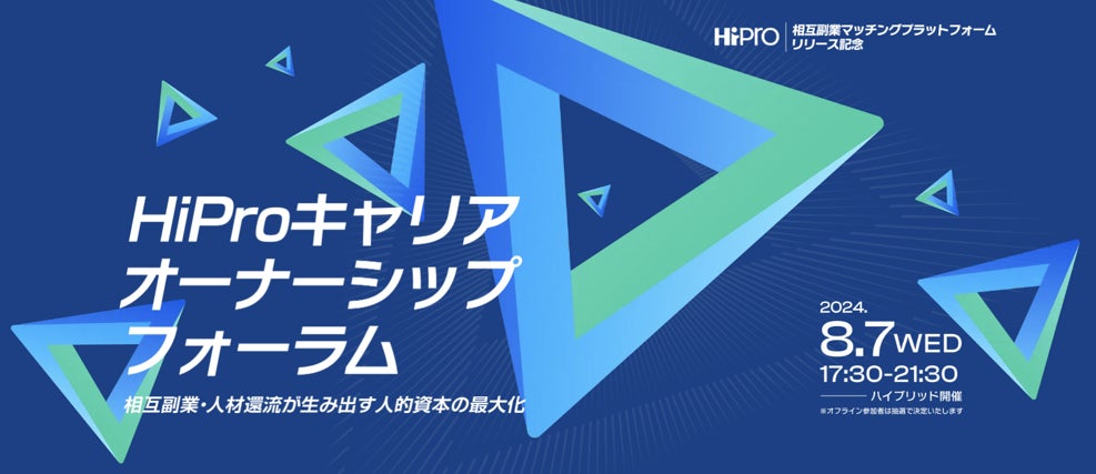 2024年8月7日(水) ハイブリット開催(参加費無料) 業界初となる「相互副業マッチングプラットフォーム」リリース記念イベント 「HiPro キャリアオーナーシップフォーラム」開催