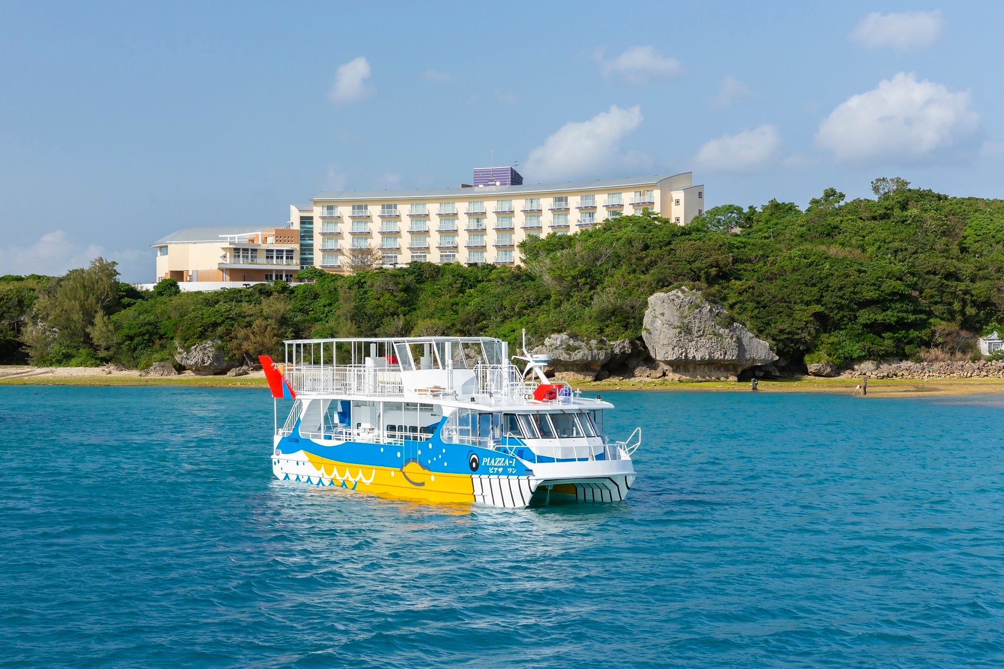 高速半潜水艇に乗り、沖縄本島で最も美しいと言われるサンゴ礁を、水中展望室からお楽しみください。色とりどりの熱帯魚が泳ぐサンゴの海に到着後、キャビンを約1.2m海中に沈めます。泳ぎが苦手な方や小さいお子さまも、ダイバー気分で海中の世界へ(40分/大人1,500円/子ども800円)