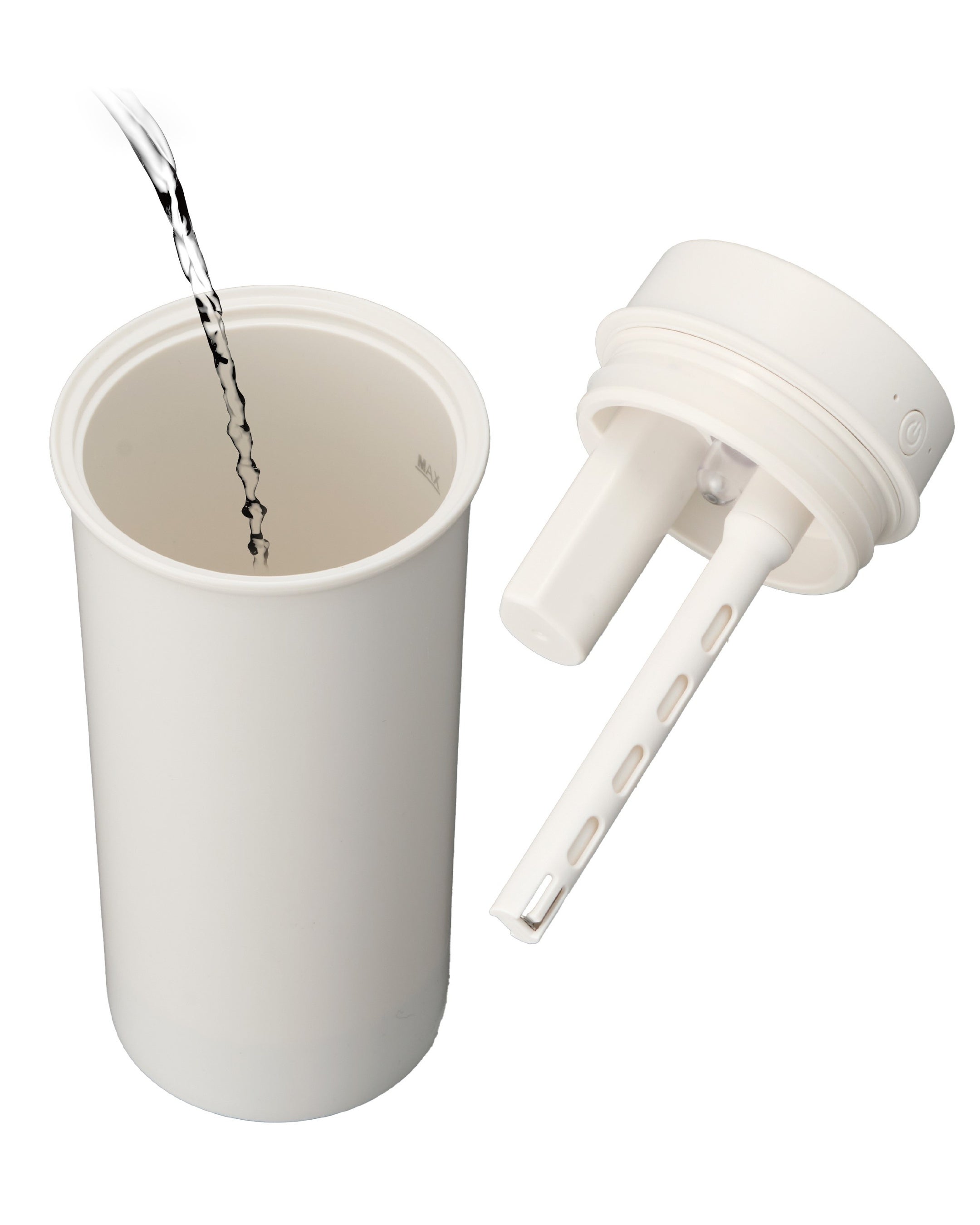 本体上部からそのまま水をいれることができるカンタン給水タイプで、手軽に使用できます。水タンク容量は400mlで、1時間あたりの加湿量は約50mlです。また、操作はボタン一つで行えるシンプルな設計です。