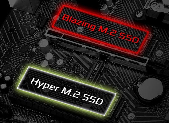 Blazing M.2 ソケットは、最新のPCI Express 5.0に対応し、前世代の2倍となる128 Gb/秒の転送速度に対応。