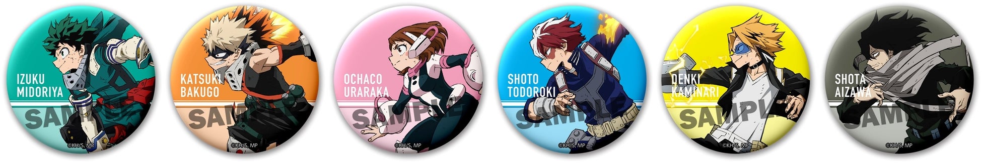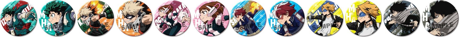 僕のヒーローアカデミアの新規限定の描き下ろしビジュアルを使用した44mmサイズの缶バッジです。