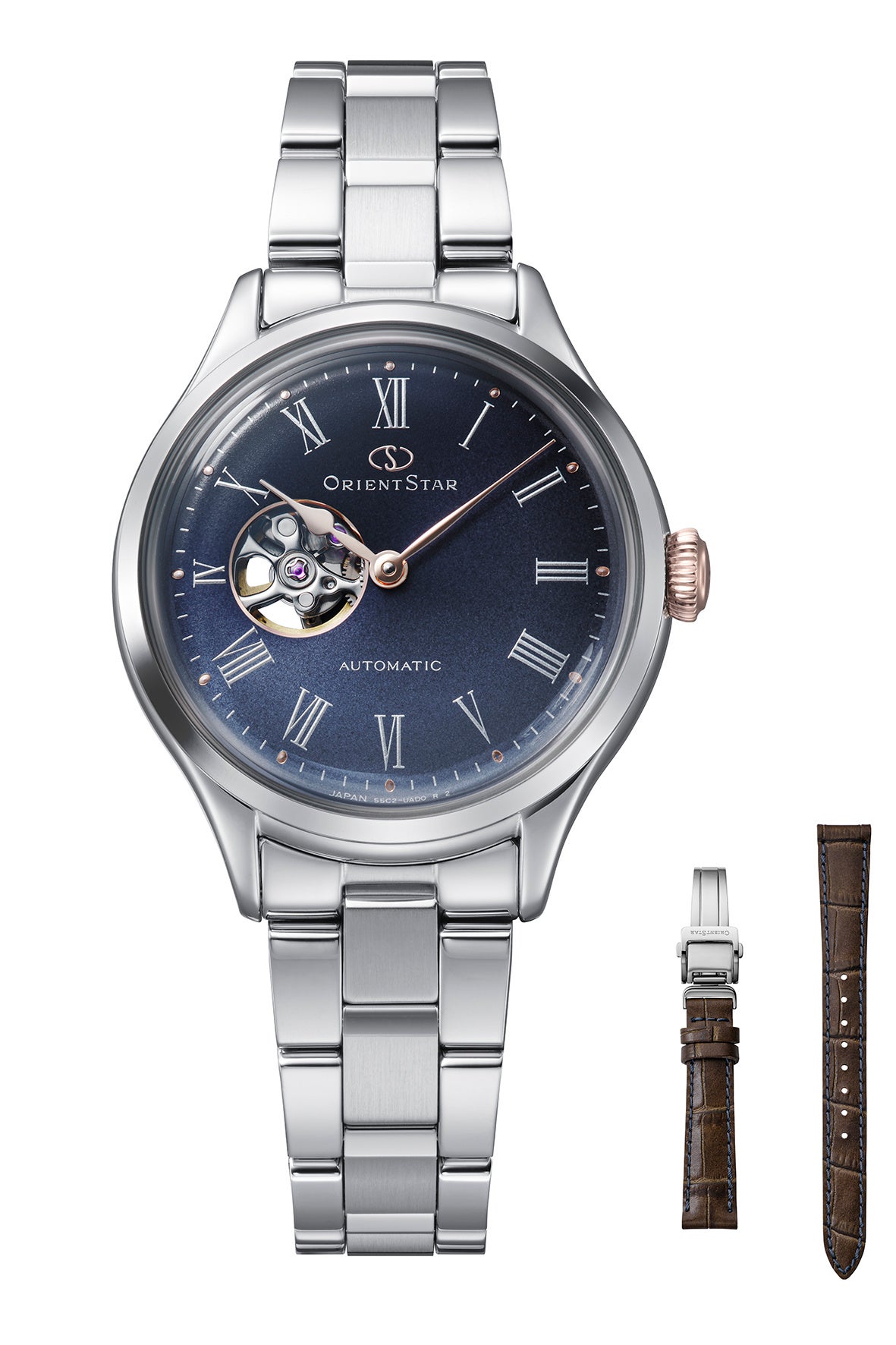 エプソン販売株式会社は、「Orient Star」から世界をつなぐ空や海の色をイメージしたMoving Blueのテーマのもと、第6弾となる数量限定モデルを2025年9月18日より発売します。今回は、コンテンポラリーコレクションから『モダンスケルトン』と『セミスケルトン』、そしてクラシックコレクションの『クラシックセミスケルトン』レディースモデルの3種類です。デザインテーマは「雪明かり」。積もった雪の反射によって夜も周囲が薄明るく見える様子をブルーの濃淡で文字板に表現し、ケースバックに限定シリアルを刻む特別仕様です。