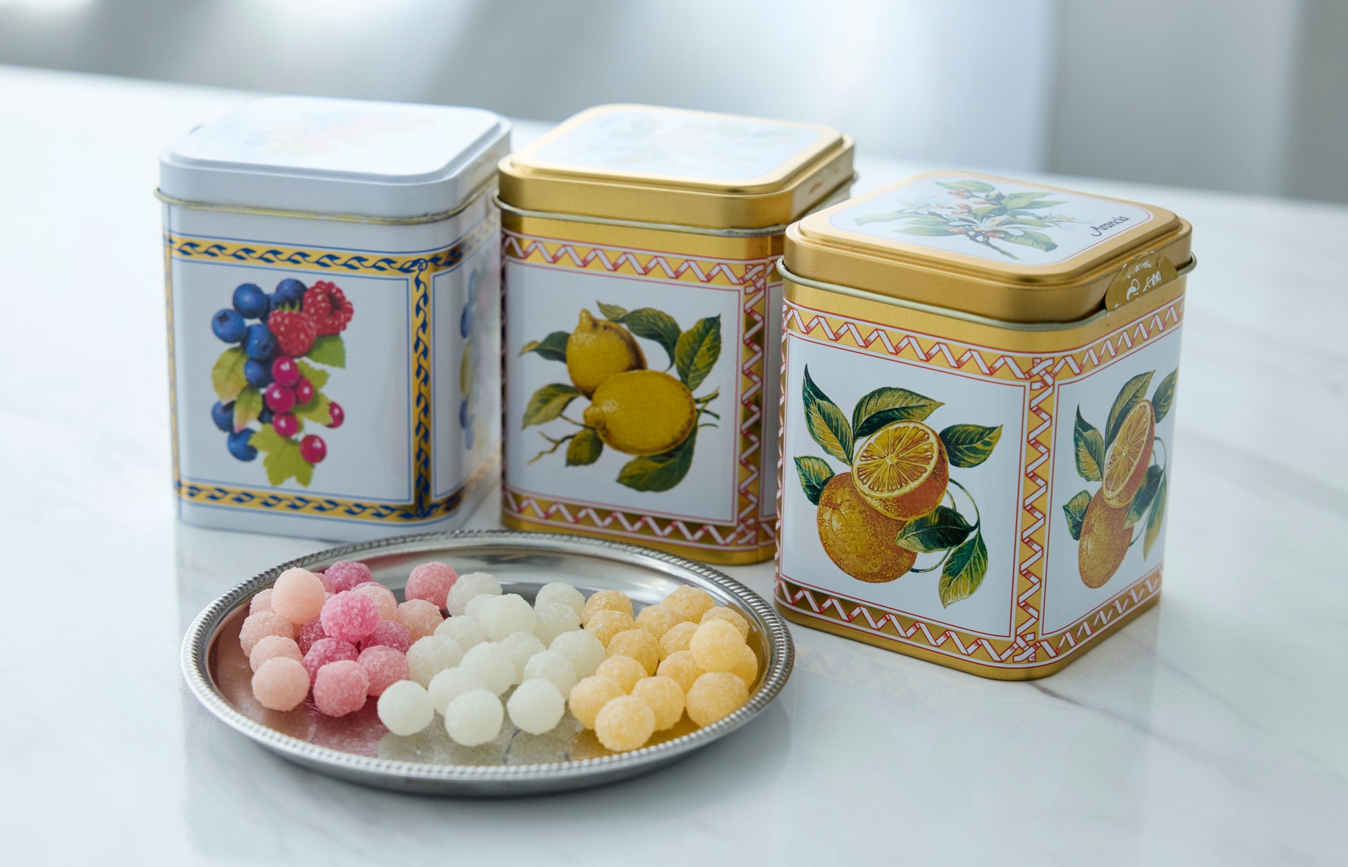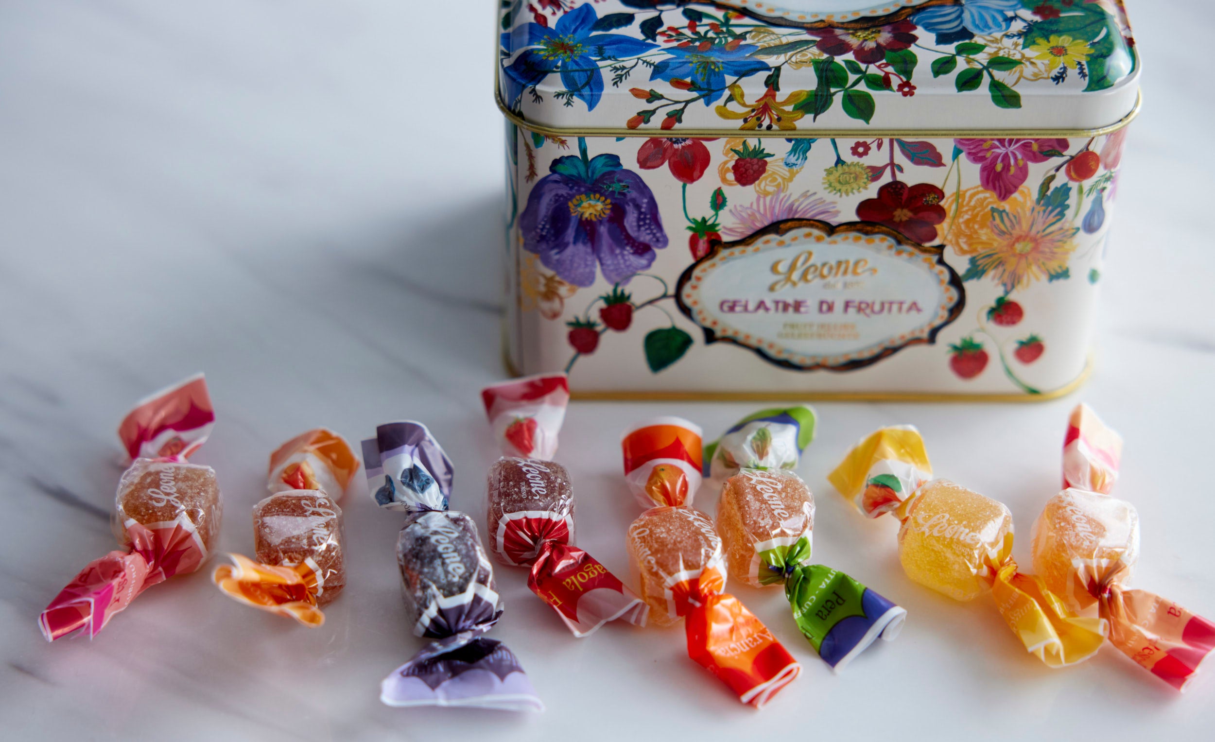 アーティスト、ナタリー・レテが描くエレガントな限定缶に色とりどりのフルーツゼリーを詰め合わせました。果実の風味を活かした瑞々しい味わいと、美しい彩りが春の贈りものにふさわしいひと品です。