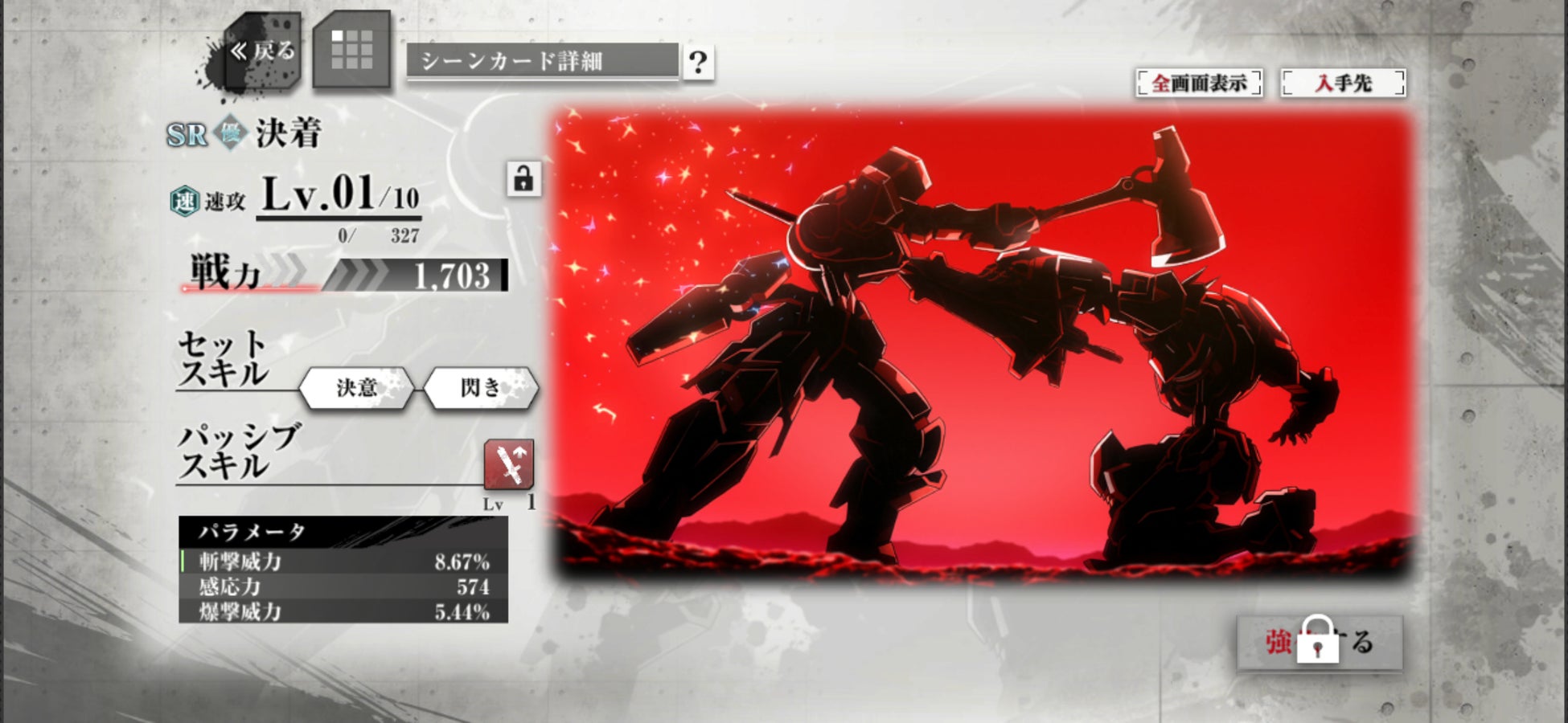特定のバトルやガシャで入手することのできるSSRのシーンカードにはアニメーション演出が入っており、ホーム画面に設定することで好きなシーンをいつでもアプリ画面上で見られるといった、名シーンをコレクションする楽しみ方もあります。