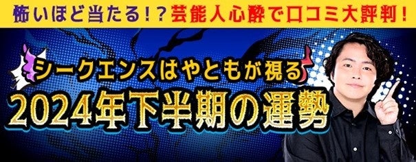 霊が視える芸人として数々の芸能人を鑑定し、その的中率の高さで話題の「シークエンスはやとも」が監修する、スマホ専用月額占いサイト「シークエンスはやともの鑑定」にて、2024年5月16日より「2024年下半期の運勢」を無料公開いたしました。