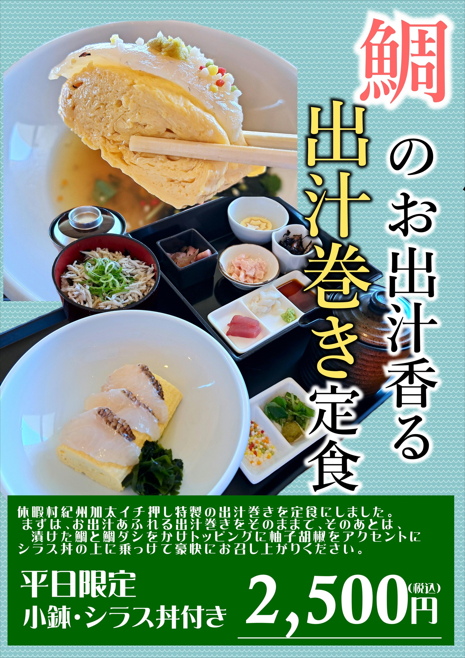 “鯛と卵好き”の和歌山市民がお届けする ぜっ鯛(たい)に玉(たま)らない定食 休暇村紀州加太では「鯛のお出汁香る出汁巻き定食」を4月8日より平日ランチ限定で販売