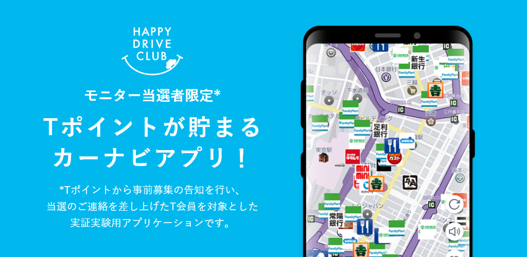~Tポイントが貯まるカーナビアプリ「HAPPY DRIVE CLUB」を提供~