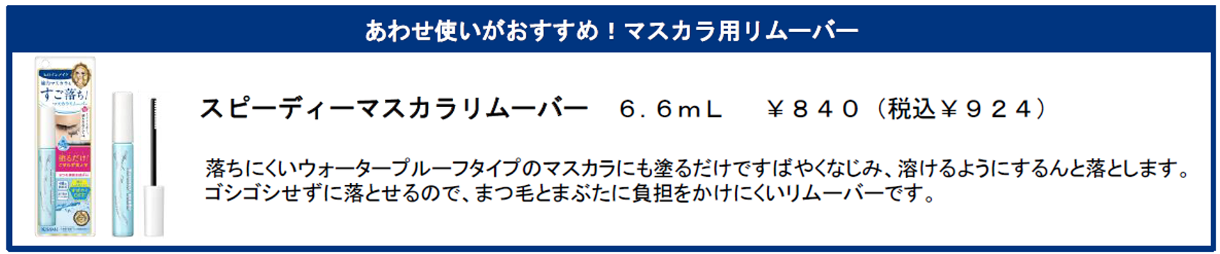 涙・汗・水・皮脂・こすれに強い、独自の耐久処方。