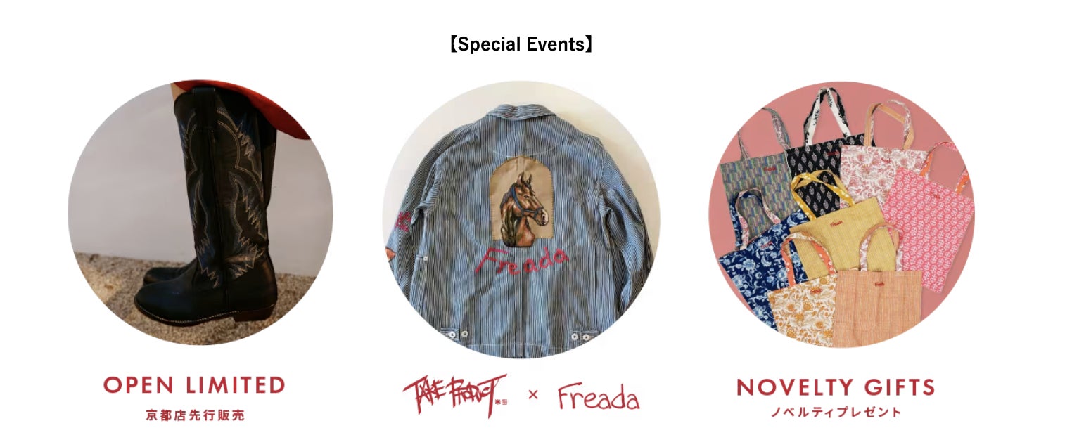 古着を原型としたミリタリー要素にエキゾチックな色や柄をミックスしたブランド『Freada(フリーダ)』が、フルラインナップで登場。先行アイテムの発売など注目のアイテムをご用意します。