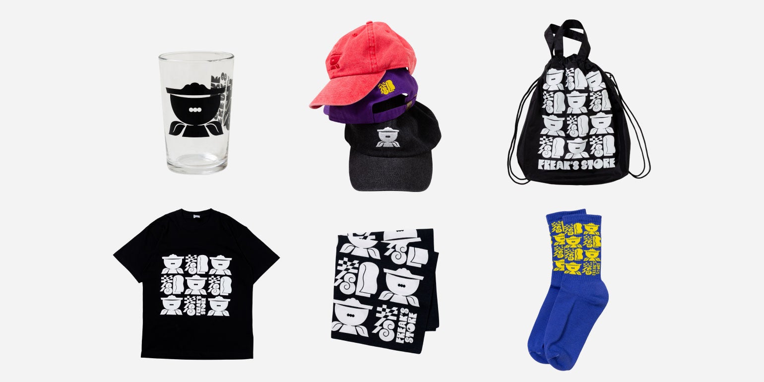 グラフィックデザイナー美山有がデザインしたFREAK'S STORE京都のストアロゴをモチーフにした限定アイテムを販売。