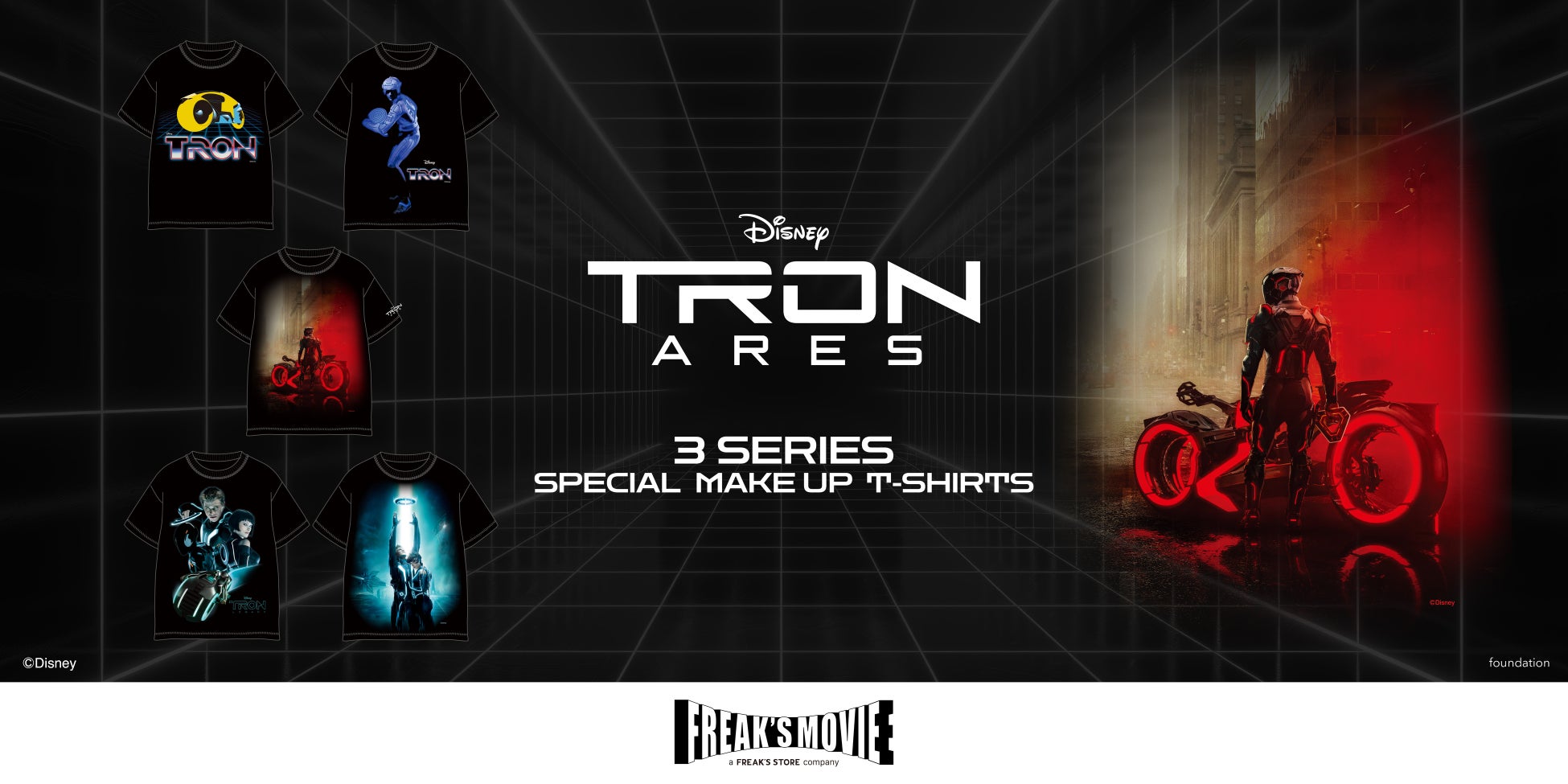 デジタル世界と現実が交錯するSFアクション映画『トロン』『トロン: レガシー』の続編となる、『トロン:アレス』が10/10(金)日米同時公開!その公開を記念したスベシャルデザインTシャツがFREAK'S STORE京都にも登場!『トロン:アレス』のみならず、『トロン』『トロン:レガシー』のグラフィックを使用したモデルもラインナップされるのでお見逃しなく!また、「トロン:アレス」に登場する1/1サイズバイクが店頭に登場!
