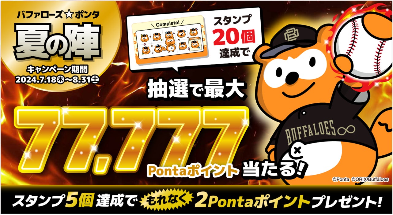 2024年シーズン後半戦も全力で応援! バファローズ☆ポンタ 夏の陣キャンペーン開催 スタンプをためると抽選で最大77,777Pontaポイントが当たる