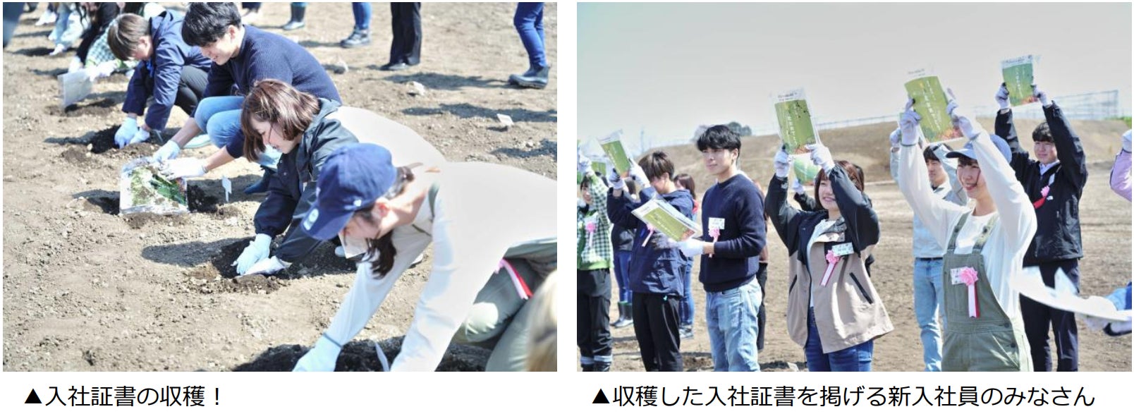 8年ぶりに復活 “畑”の入社式 ~29名の新入社員が入社証書を畑から収穫!?~