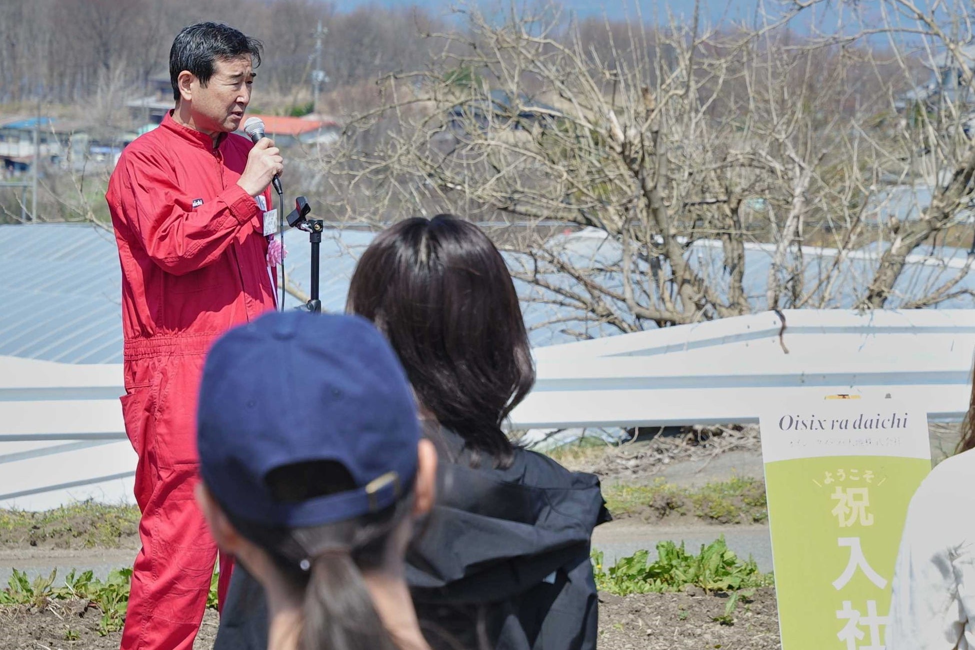 食品のサブスクリプションサービスを提供するオイシックス・ラ・大地株式会社(本社:東京都品川区、代表取締役社長:高島 宏平、以下、オイシックス・ラ・大地)は、2023年度の入社式を2023年4月3日(月)に、群馬県昭和村にある提携産地の“野菜くらぶ”の畑にて行いました。