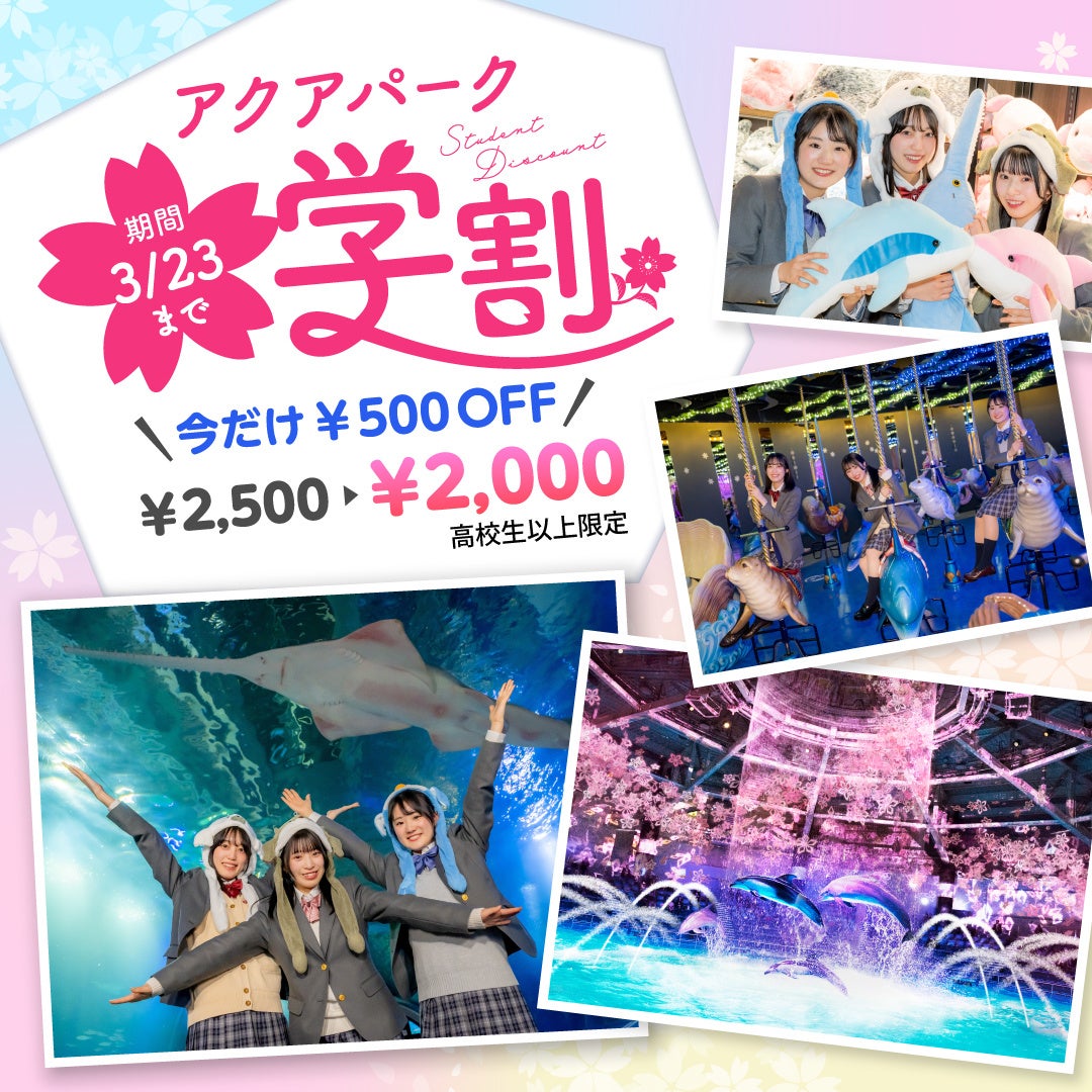 ※3月8日(土)は「お花見ナイトアクアリウム」開催のため、19:30に閉館いたします。