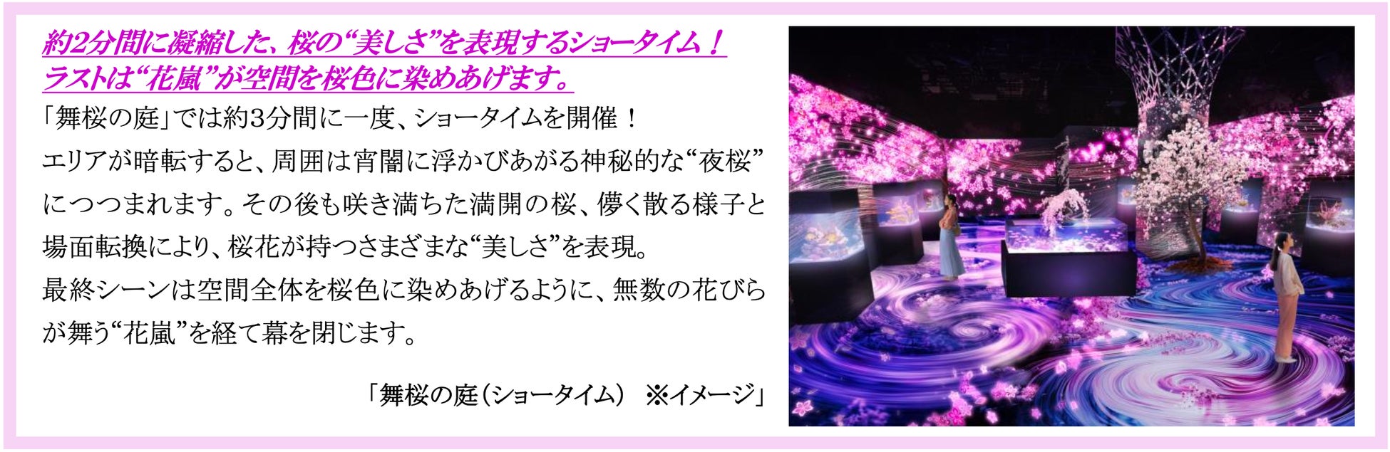 また、屋内型の施設なので春先の肌寒さや今年大量飛散が見込まれる“花粉”も気にせず快適にお過ごしいただけ、さらに、デジタルの“桜”はいつでも満開!開花時期に左右されず、お好きなタイミングでお花見が楽しめます。