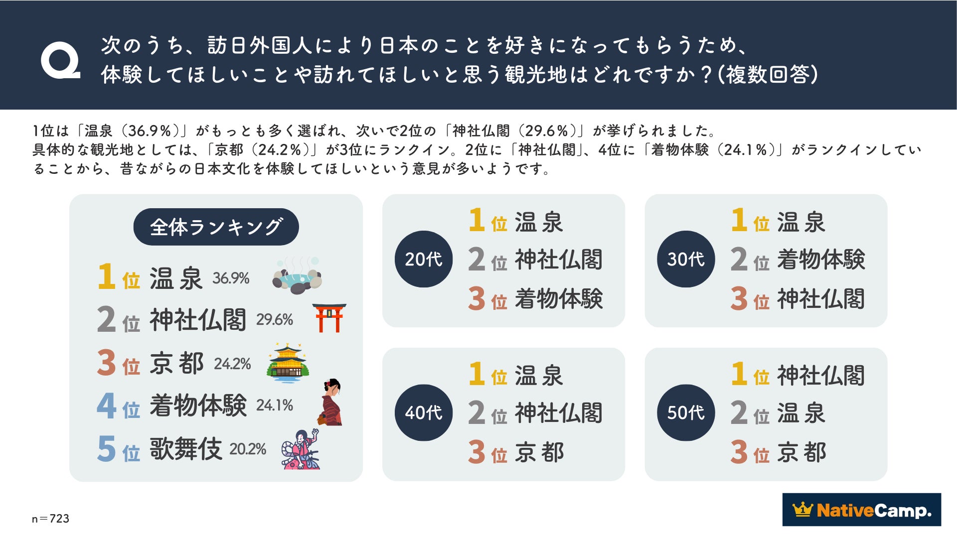 ・おすすめの「体験」「観光地」は、日本の昔ながらの文化が上位にランクイン