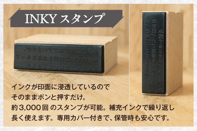 インクが印面に浸透しているので、そのままポンと押すだけ。約3,000回のスタンプが可能。