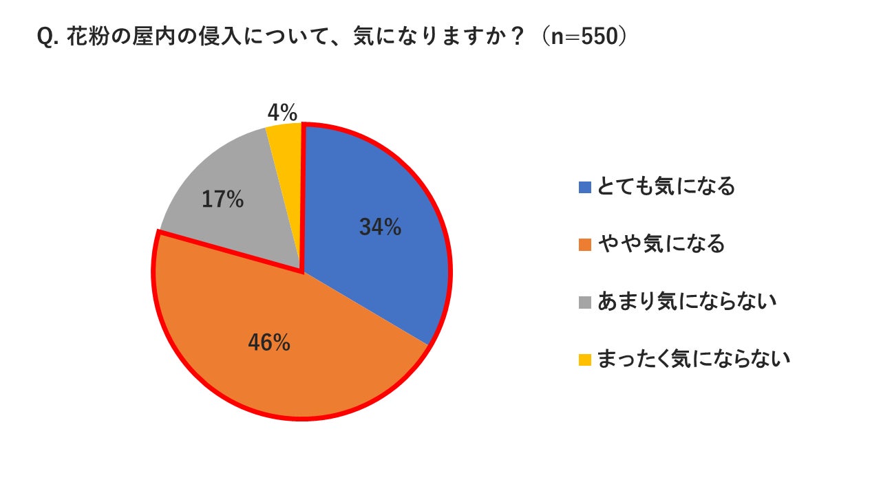 次に、「花粉の屋内の侵入について、気になりますか?」という質問では、8割の方が気になると回答しました。