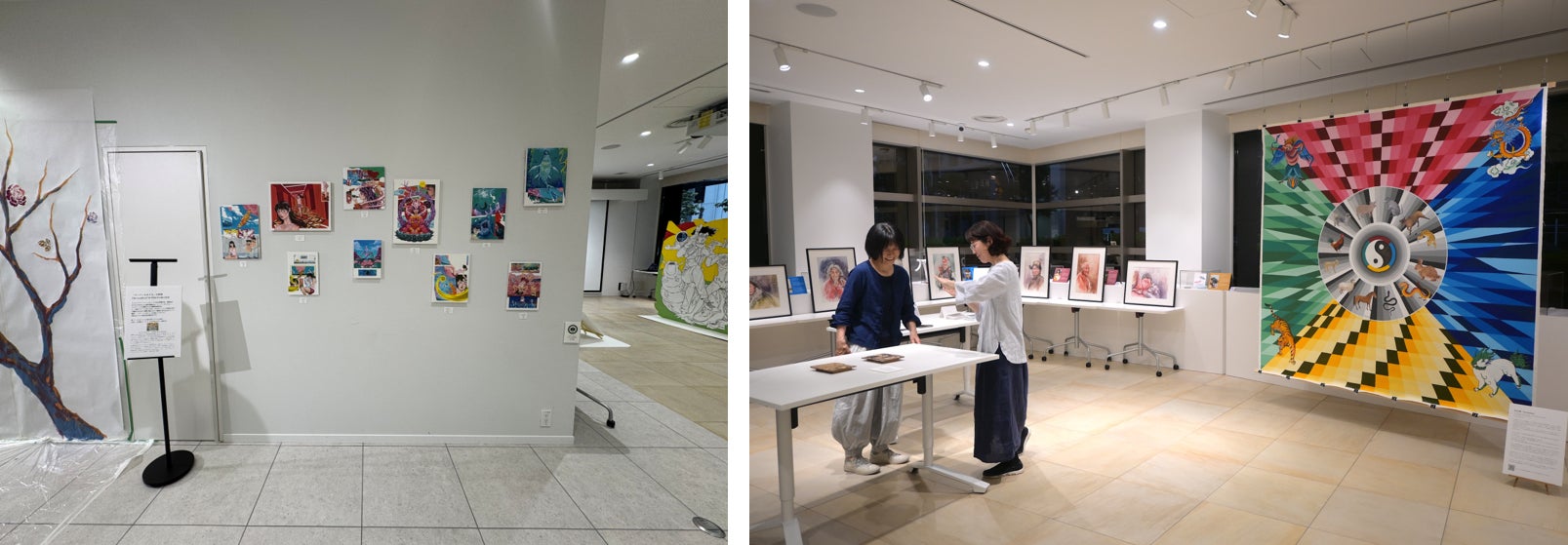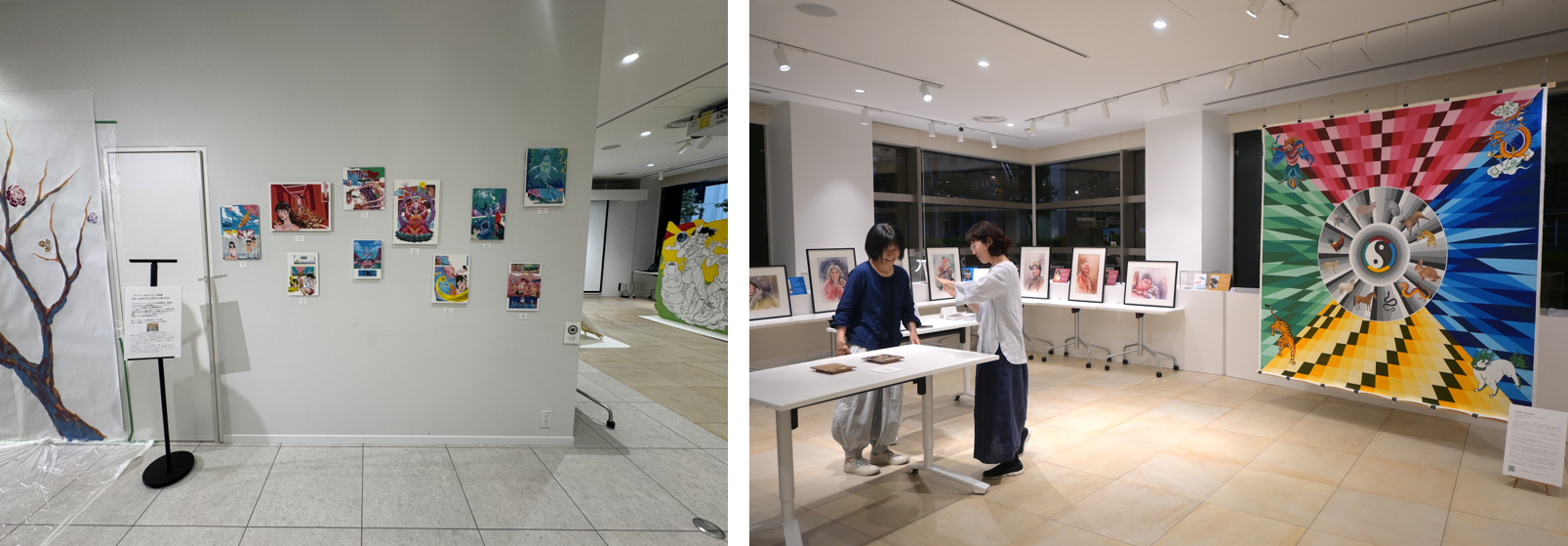 イベントにはプロジェクトに興味を持つ来場者約100人が集まりました。トークイベント前には、漫画家のおぐりちはやさんのライブペイントが行われました。おぐりさんは「ワイルドローズ」の木や幹を描き、貝印社員や参加者がステンシルの手法で花を咲かせました。この「ワイルドローズ」は、2017年におぐりさんがラダックの公立学校で生徒たちと完成させた壁画で、9年ぶりの修復を予定しています。また、同じ壁面には次々と不思議な生き物が遊泳するように描かれ、ラダックの芸術祭の様子を彷彿させました。インドのスパイスを効かせたチャイやラダックの伝統食の春雨カレー「ピン」を楽しみながらの鑑賞となりました。