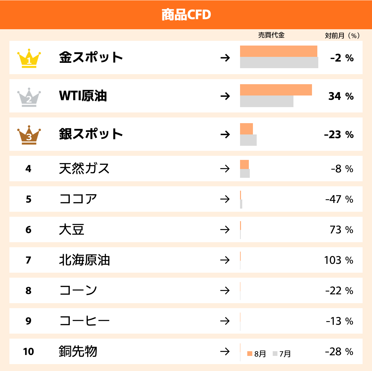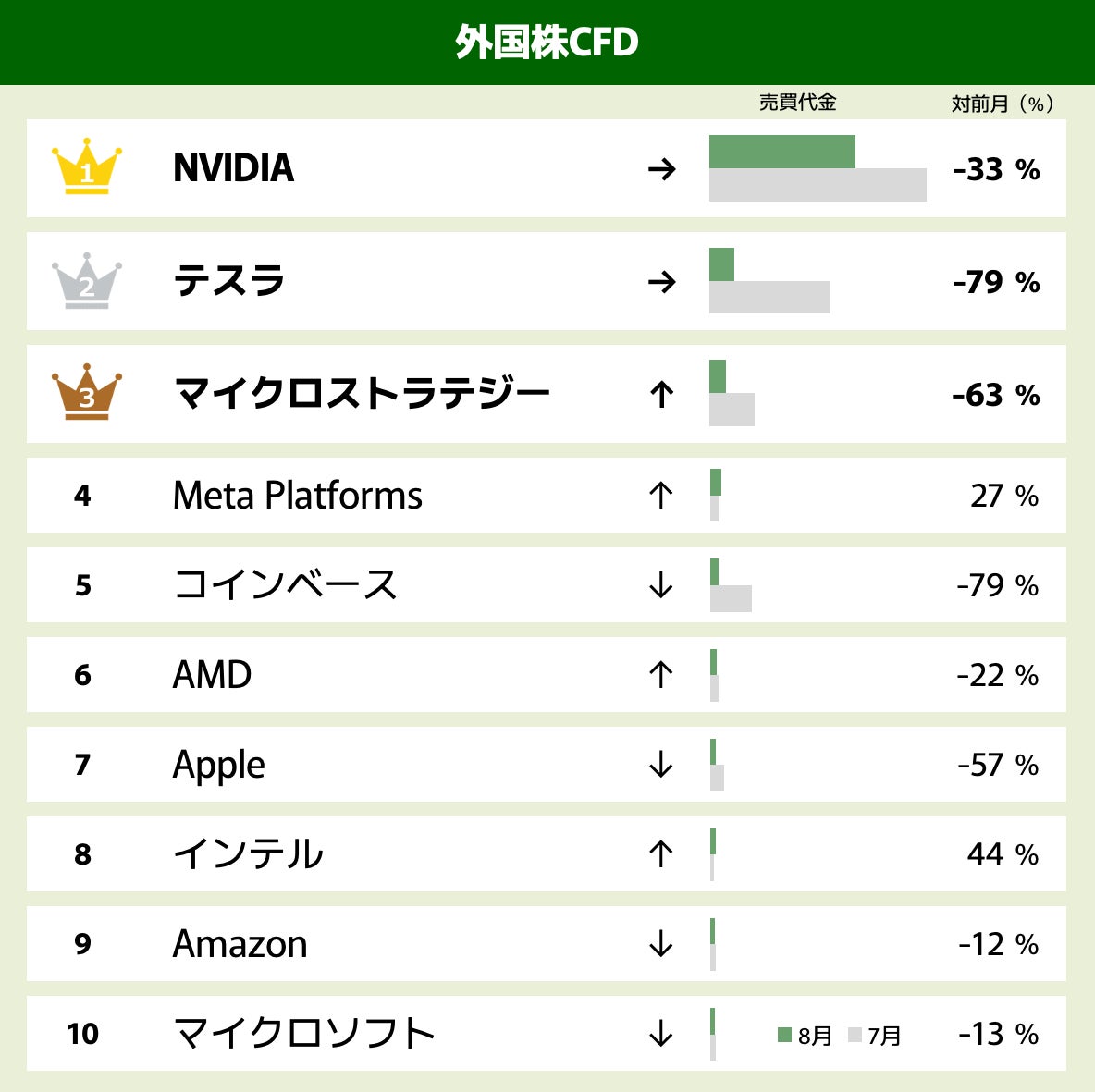 GMOクリック証券:2024年8月CFD売買代金ランキングを発表
