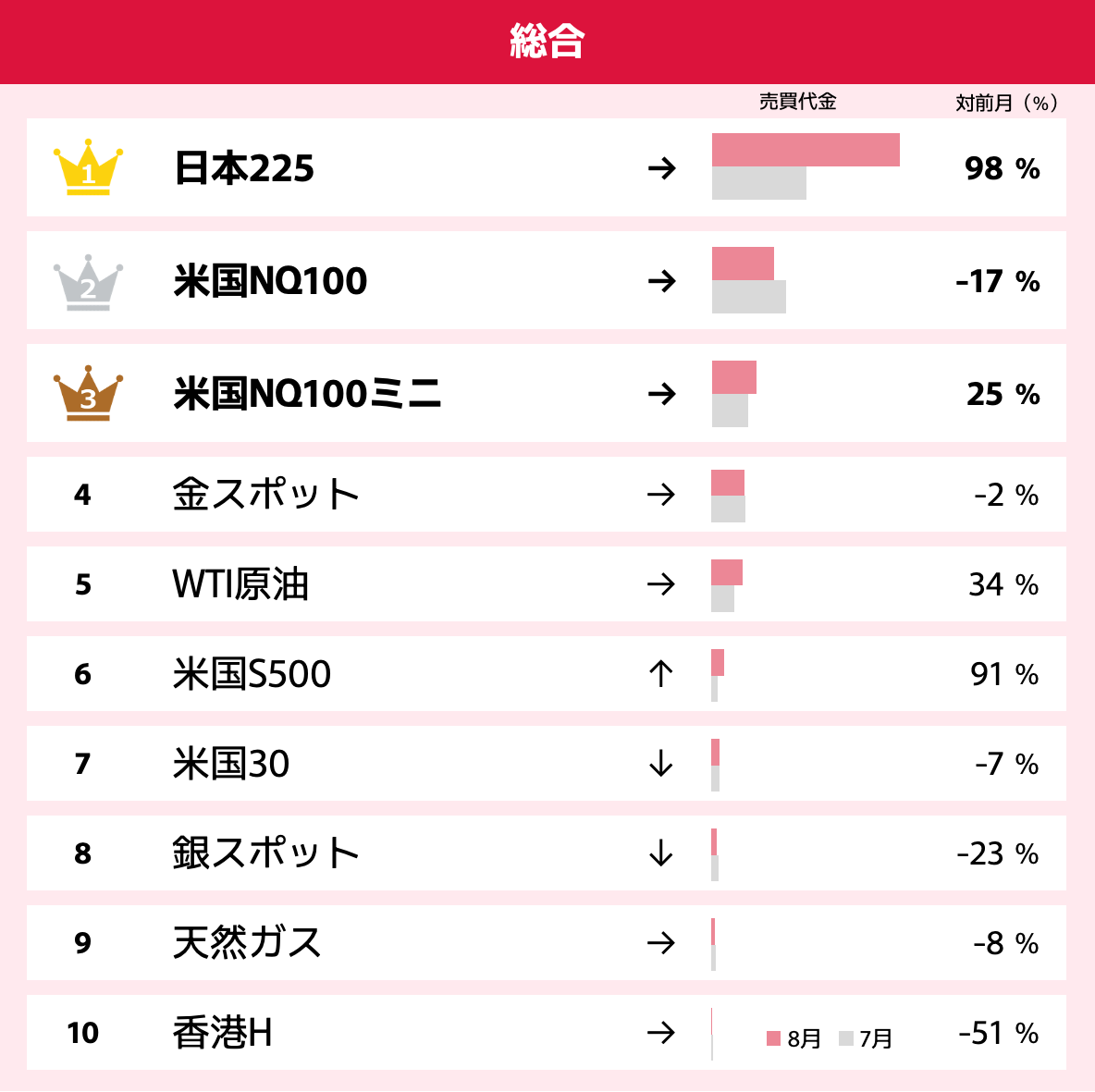 ~総合首位は日本225!バラエティCFDは米国VI、商品CFDは金スポット、外国株CFDはNVIDIAが首位に~